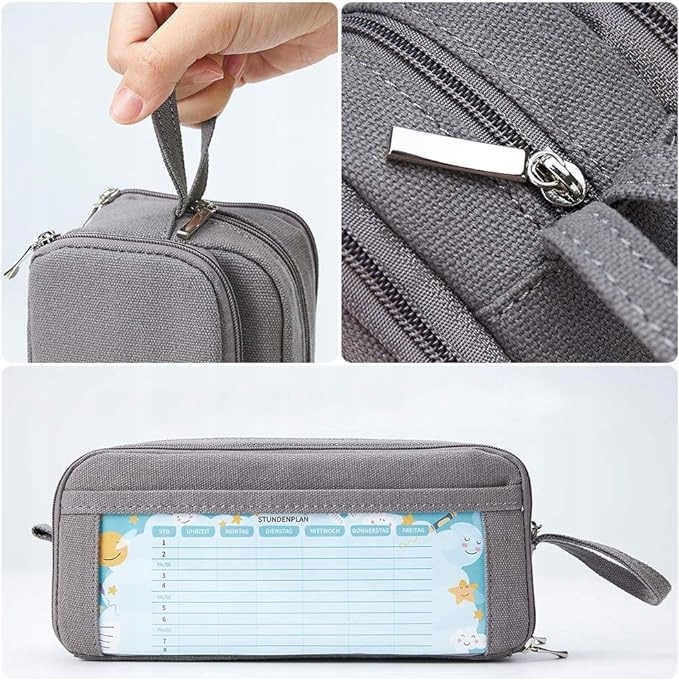 ЭЛЕГАНТНЫЙ ЧЕХОЛ ДЛЯ ПЕНСИБА С ТРЕМЯ ОТДЕЛЕНИЯМИ СЕРОГО ЦВЕТА