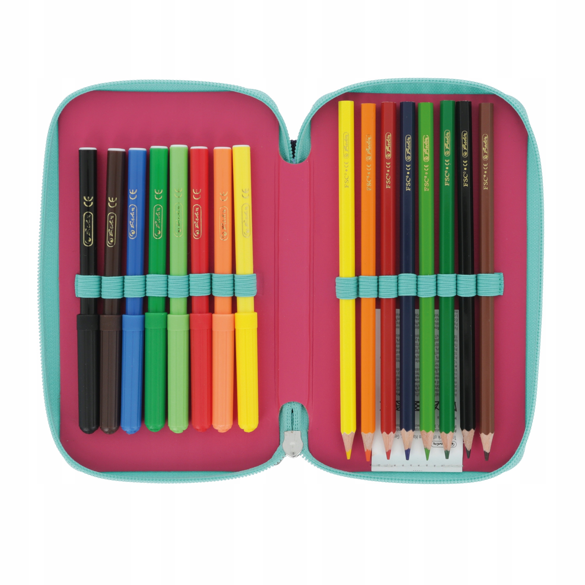 ШКОЛЬНЫЙ ПЕНАЛ С ДВУМЯ ОТДЕЛЕНИЯМИ С ОБОРУДОВАНИЕМ HERLITZ PINK STARS