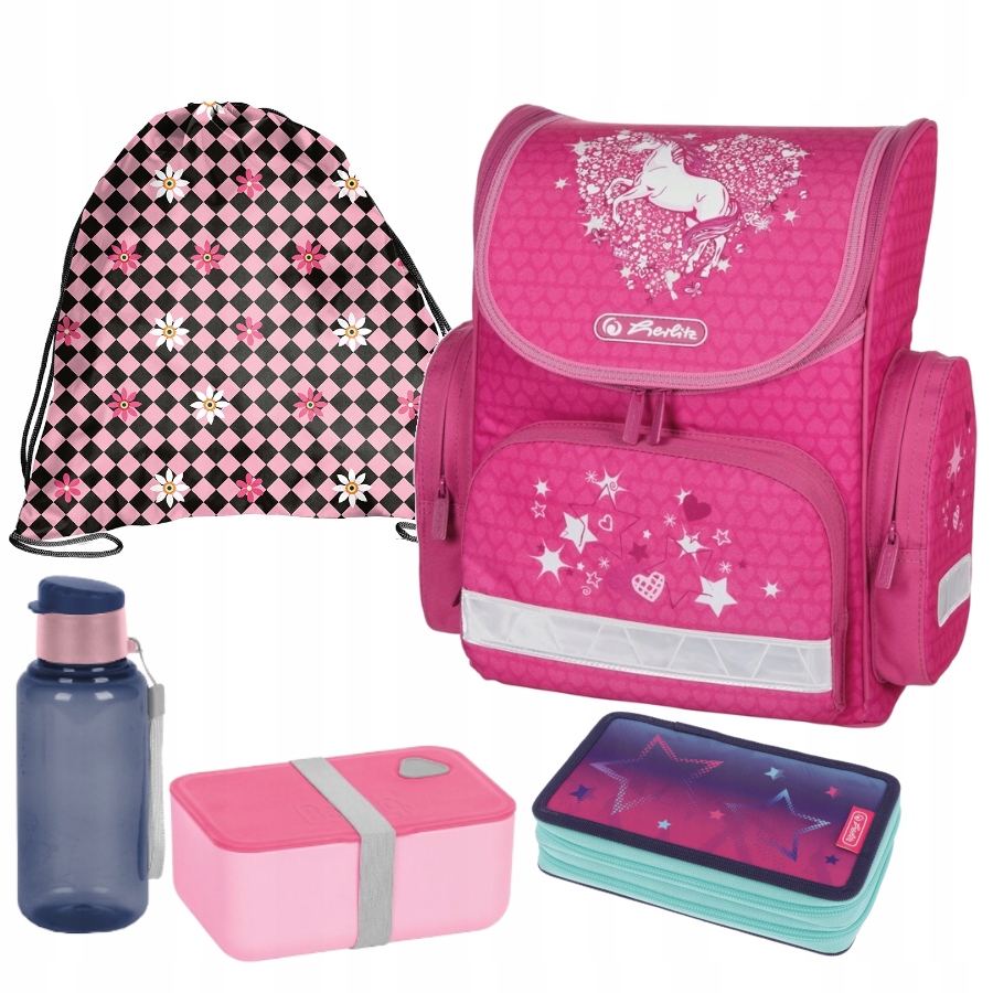 HERLITZ ШКОЛЬНЫЙ РЮКЗАК Рюкзак Розовый Единорог 5 элементов