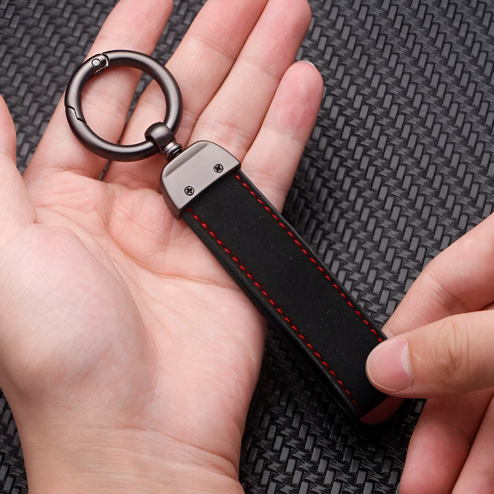 ➡️Брелок выполнен в классическом стиле на основе толстого кожаного ремешка, минимализм исполнения сочетается с красивым темным хромированным кольцом и красной нитью. подчеркивая спортивный характер бренда.