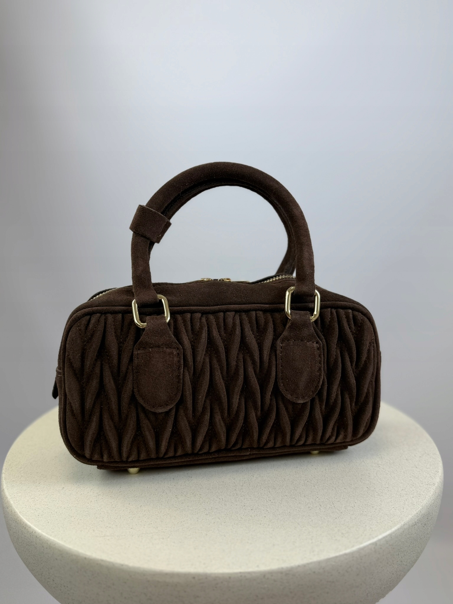 Сумочка Piccolin's И это стильный багет из натуральной замшевой кожи с плиссированным рисунком спереди и сзади, который является минималистичным и в то же время в тенденциях! крошечный, стройный и вместительный. доступны во многих модных цветах, позволяет адаптироваться к разным стилям - как дневное, так и вечер. Он появляется в гладкой коже и плиссированной, а также в версии с плиссированной замшей.