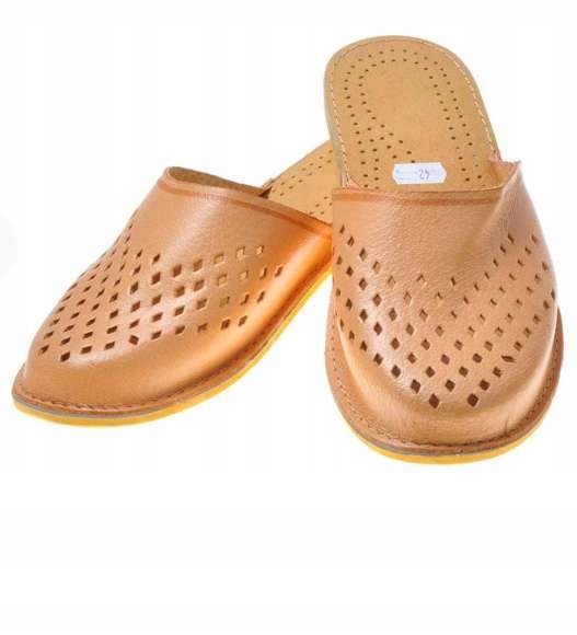 - Удобные мужские домашние шлепанцы из натуральной кожи с ажурной фактурой.