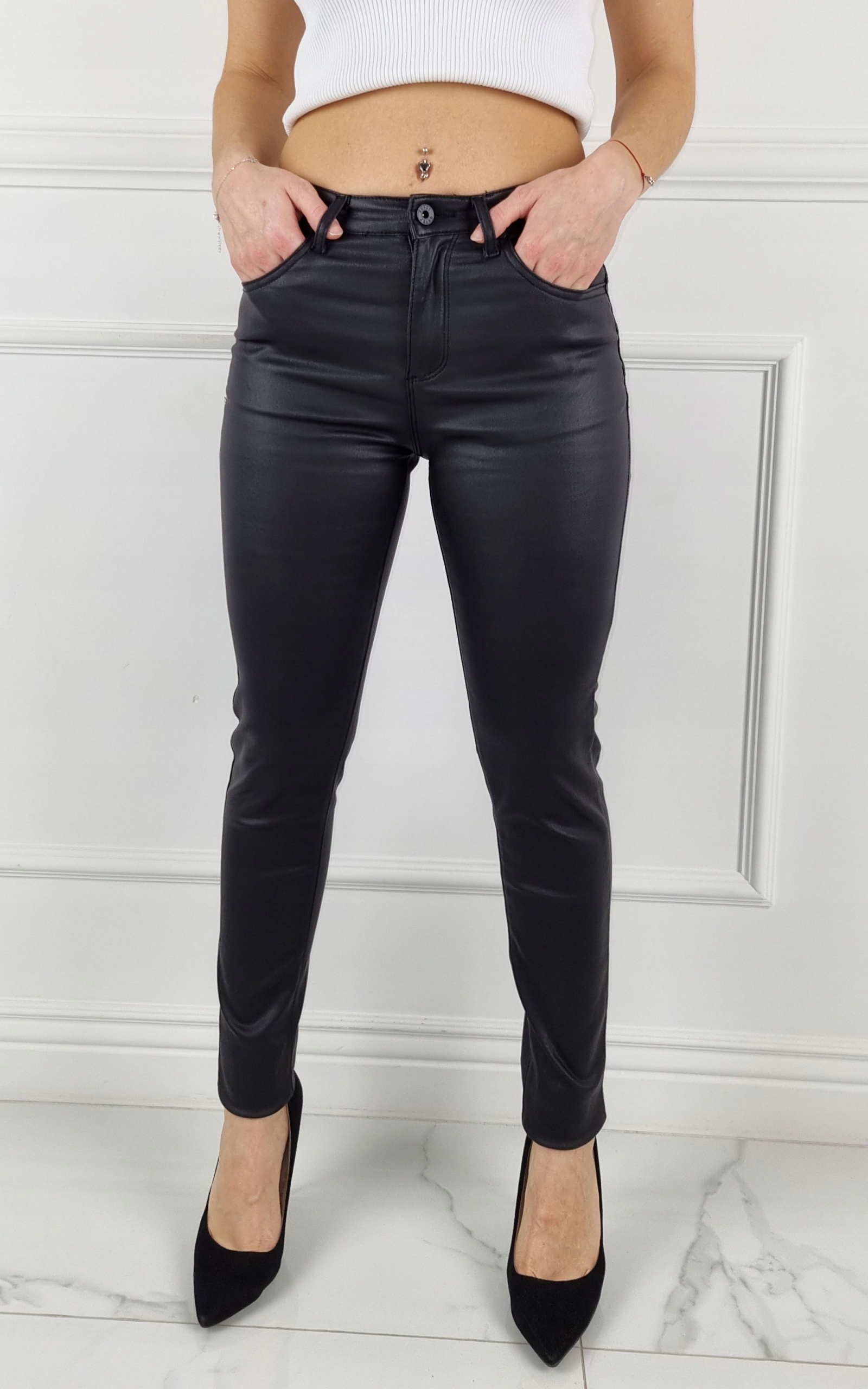 Отличные классические вощеные, УТЕПЛЕННЫЕ брюки, имитирующие кожу, с завышенной талией. б> Отлично подходят для спортивной обуви, но также идеальны в сочетании с обувью на высоком каблуке, поскольку благодаря своей универсальности подходят практически к любому стилю. Гибкий материал подчеркивает женскую фигуру. Брюки приталенные и тянутся. Подчеркните свои женственные формы! Сделайте свой повседневный образ уникальным. Брюки имеют карманы с обеих сторон.