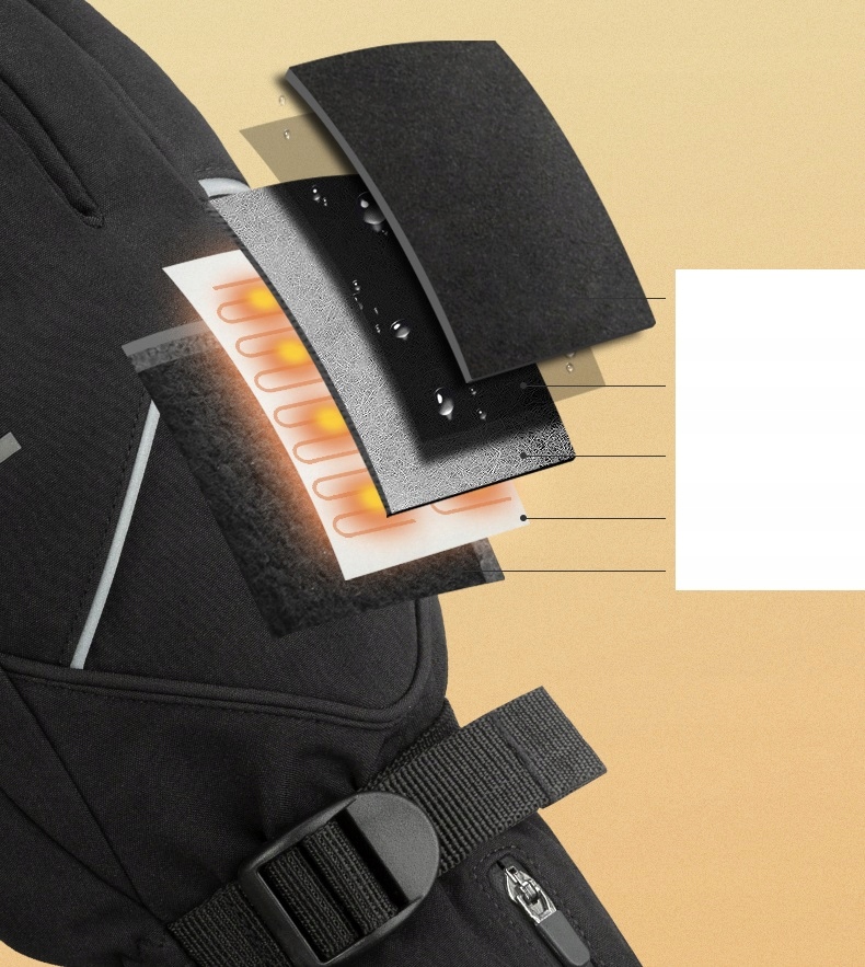 Самым большим преимуществом перчаток ROCKBROS является электрический подогрев их внутренней части. Легкодоступная кнопка со светодиодной подсветкой на задней стороне перчаток позволяет установить одну из трех мощностей нагрева: красный режим до 65℃, зеленый режим до 55<. /b>℃ , синий режим до 45℃. Целых три режима позволяют установить оптимальную температуру нагрева с учетом ваших индивидуальных потребностей и предпочтений. Тепло в перчатках мы почувствуем уже через несколько секунд после их включения. Они питаются от аккумуляторов емкостью 4000 мАч, входящих в комплект. Батарейки помещаются в специальный карман на запястье, закрывающийся на молнию. В комплект входит кабель SUB 2-в-1 для одновременной зарядки обеих перчаток (зарядное устройство в комплект не входит).
