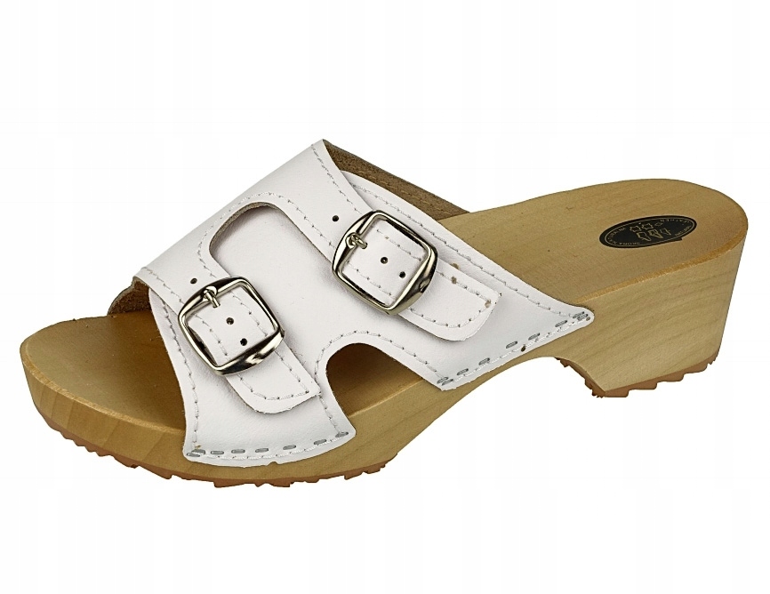 Туфли из натурального дерева и натуральной кожи, снизу закреплены противоскользящей резиной. Используемые натуральные материалы гарантируют идеальные условия для ваших ног.