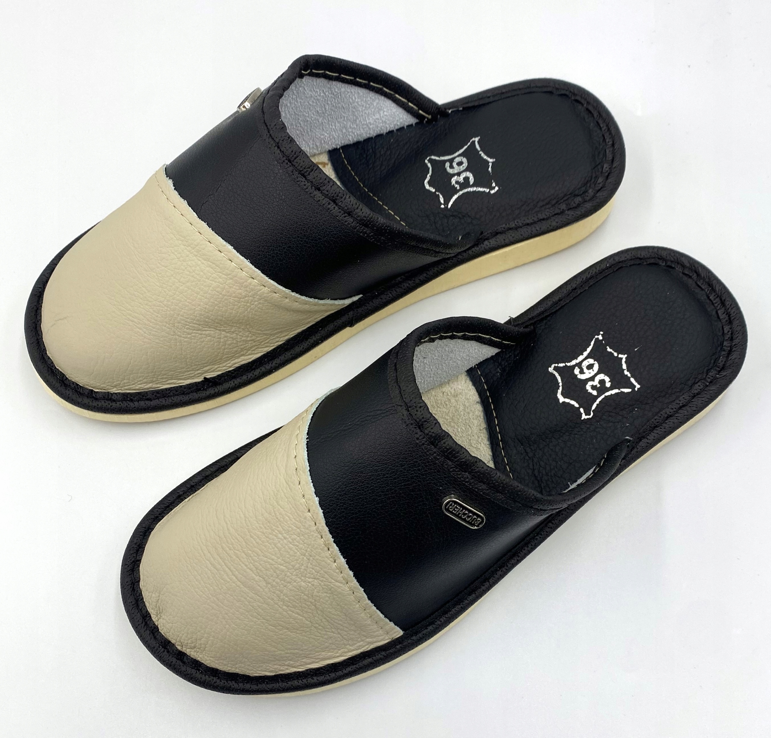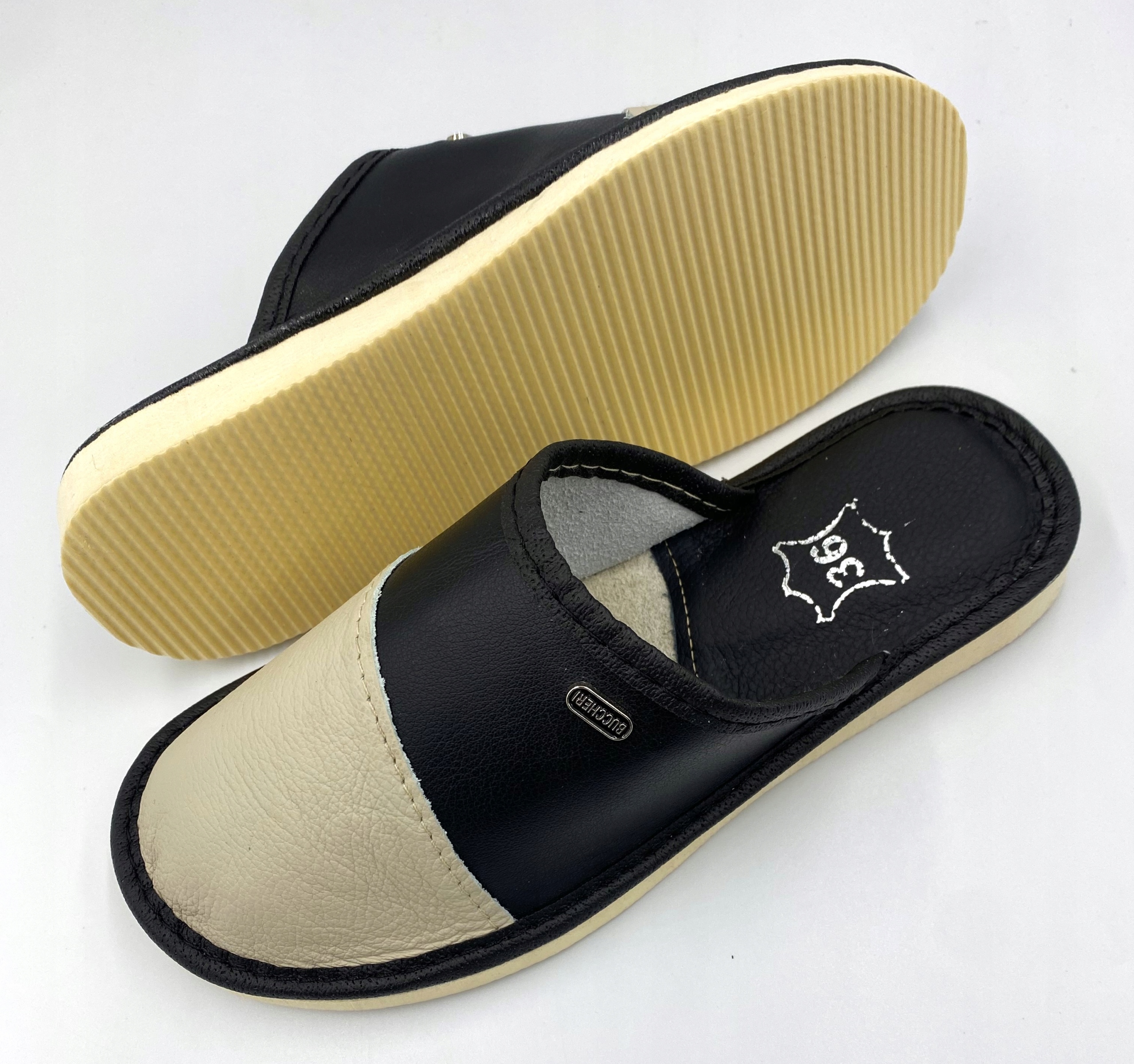 ТАПОЧКИ КОЖАНЫЕ ТАПОЧКИ ЖЕНСКИЕ бело-черные размер 39