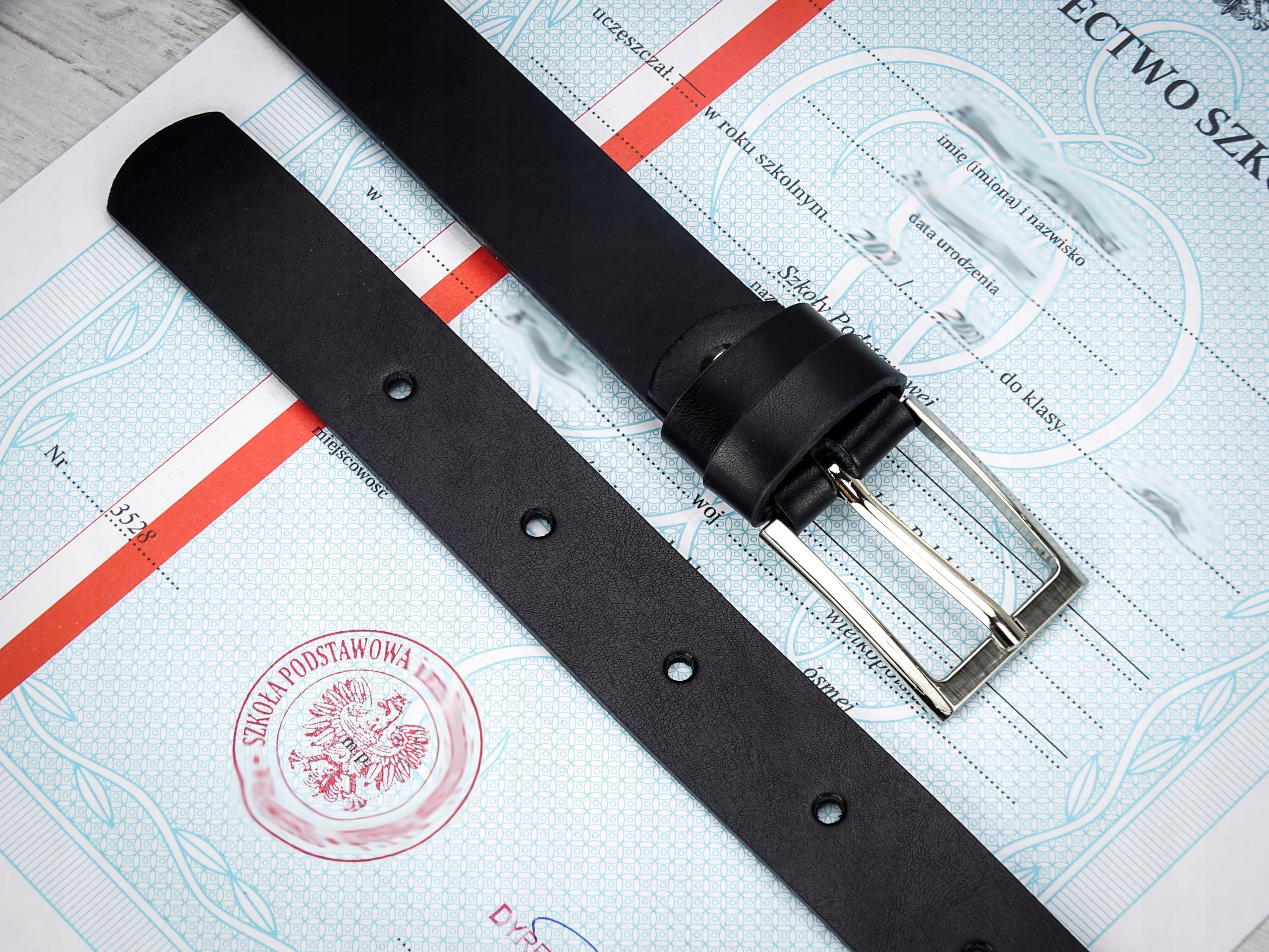 Классический черный кожаный ремень GRACIO для ДЕТЕЙ к КОСТЮМНЫМ БРЮКАМ