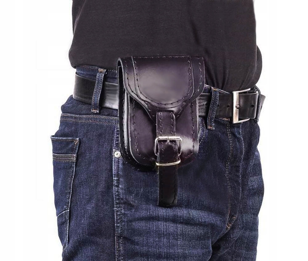 Сумку можно прикрепить с помощью ремня к кожаным ремням на майке, кофрам, брючным ремням и многим другим местам.