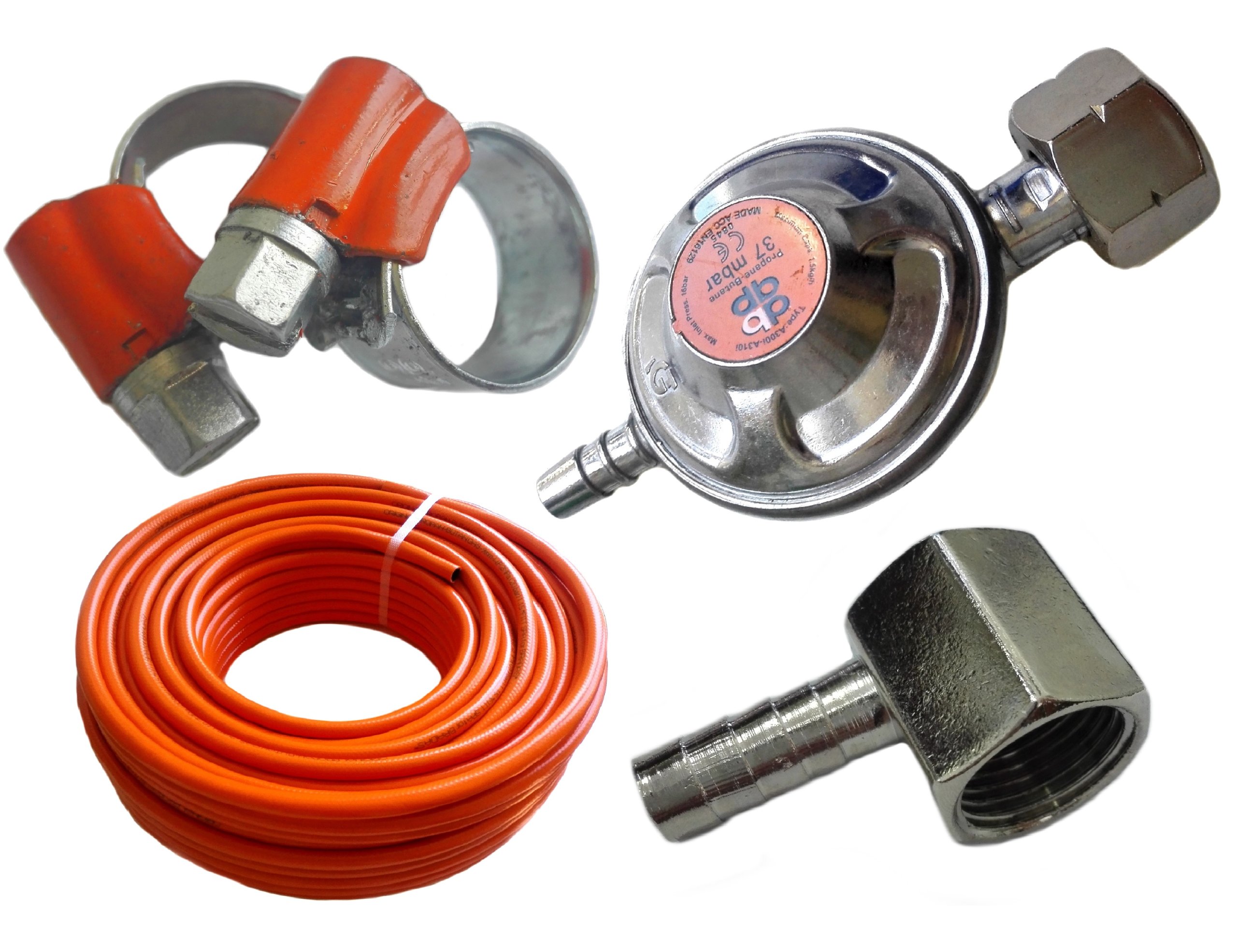 Бензошланг 1М + Пропановый редуктор + Хомуты + Колено