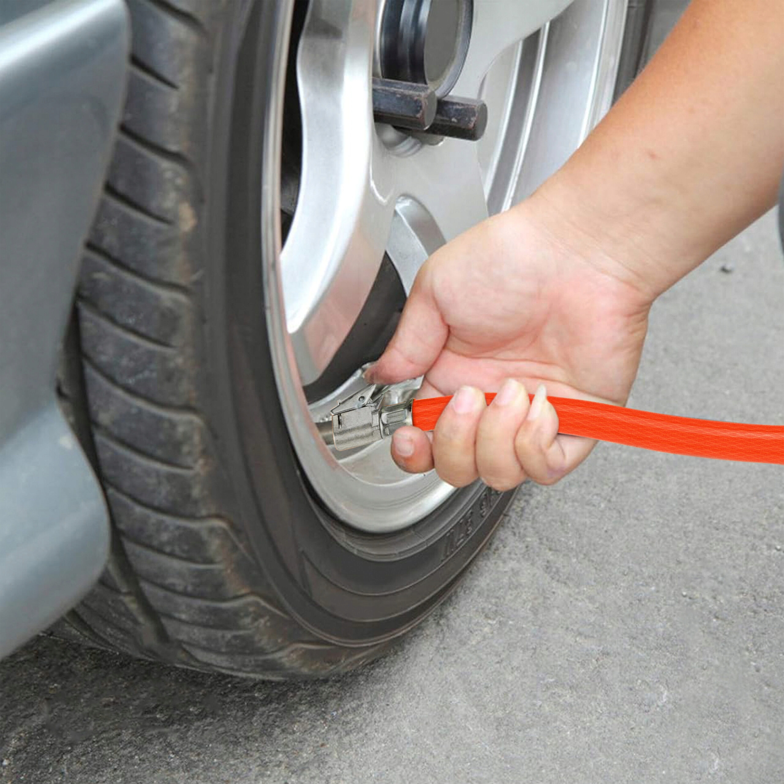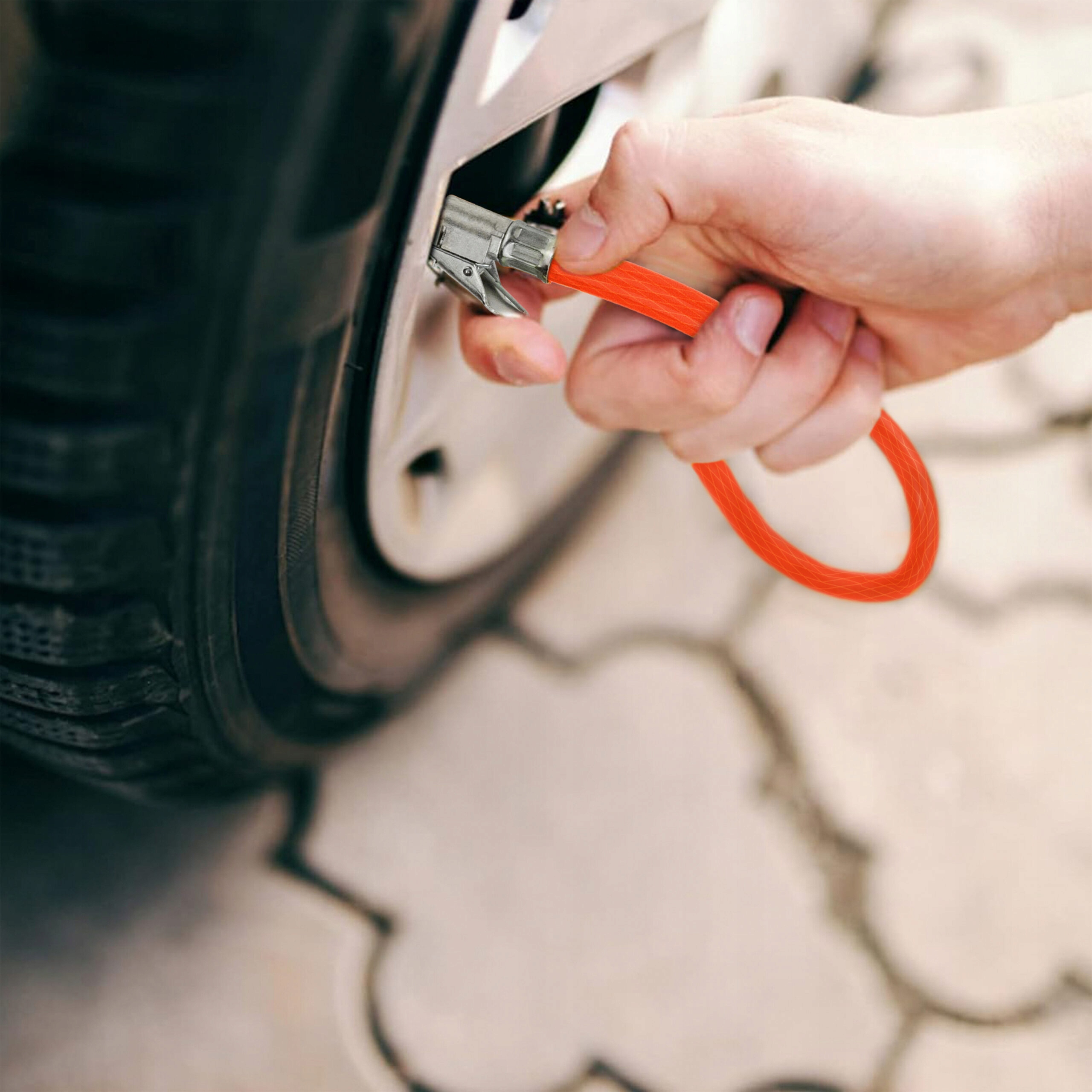Шланг совместим с большинством устройств для подкачки шин, доступных на рынке. Имеет стандартный наконечник 1/8 дюйма. Изготовлен из высококачественного материала, устойчивого к повреждениям, истиранию и погодным условиям.