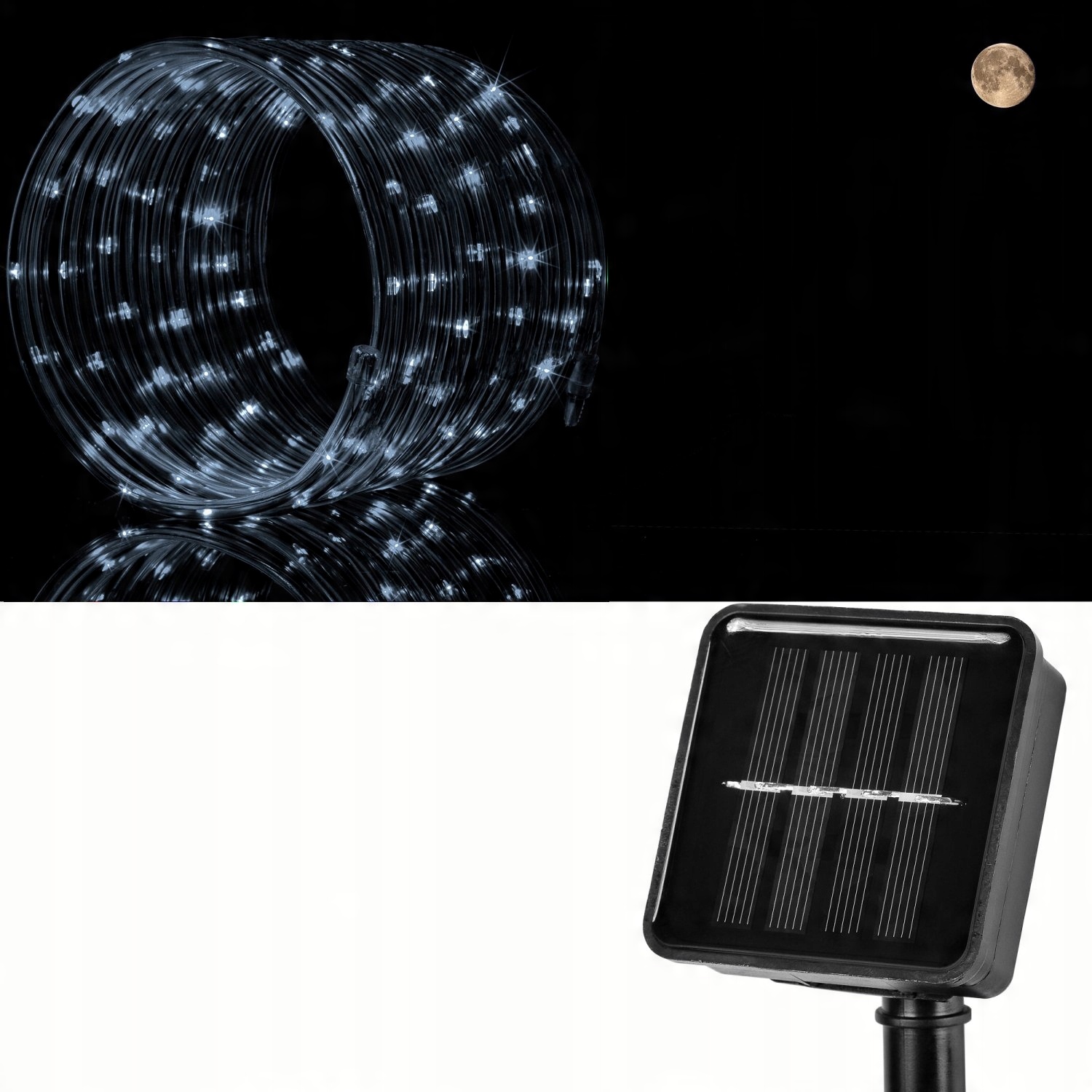 - Световой шланг 100 светодиодов с солнечной панелью