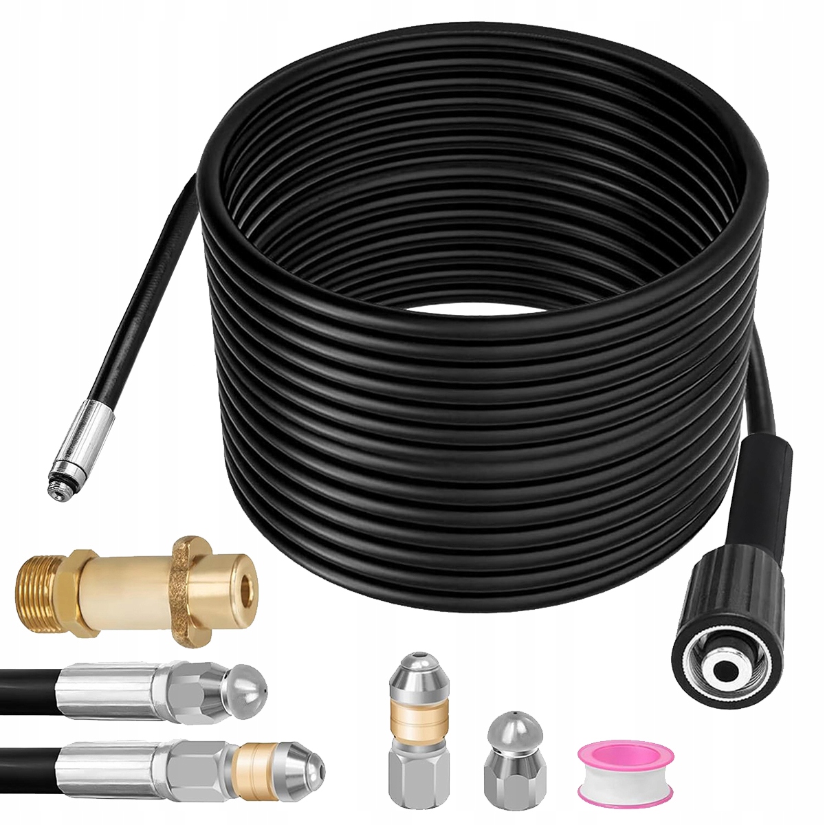 набор шлангов для очистки труб 30 м, 400 бар, включая адаптер M22, твердые форсунки + вращающиеся шайбы высокого давления Kärcher K2, K3, K4, K5, K6, K7, универсальный набор для очистки труб, шланг высокого давления (черный) h1>