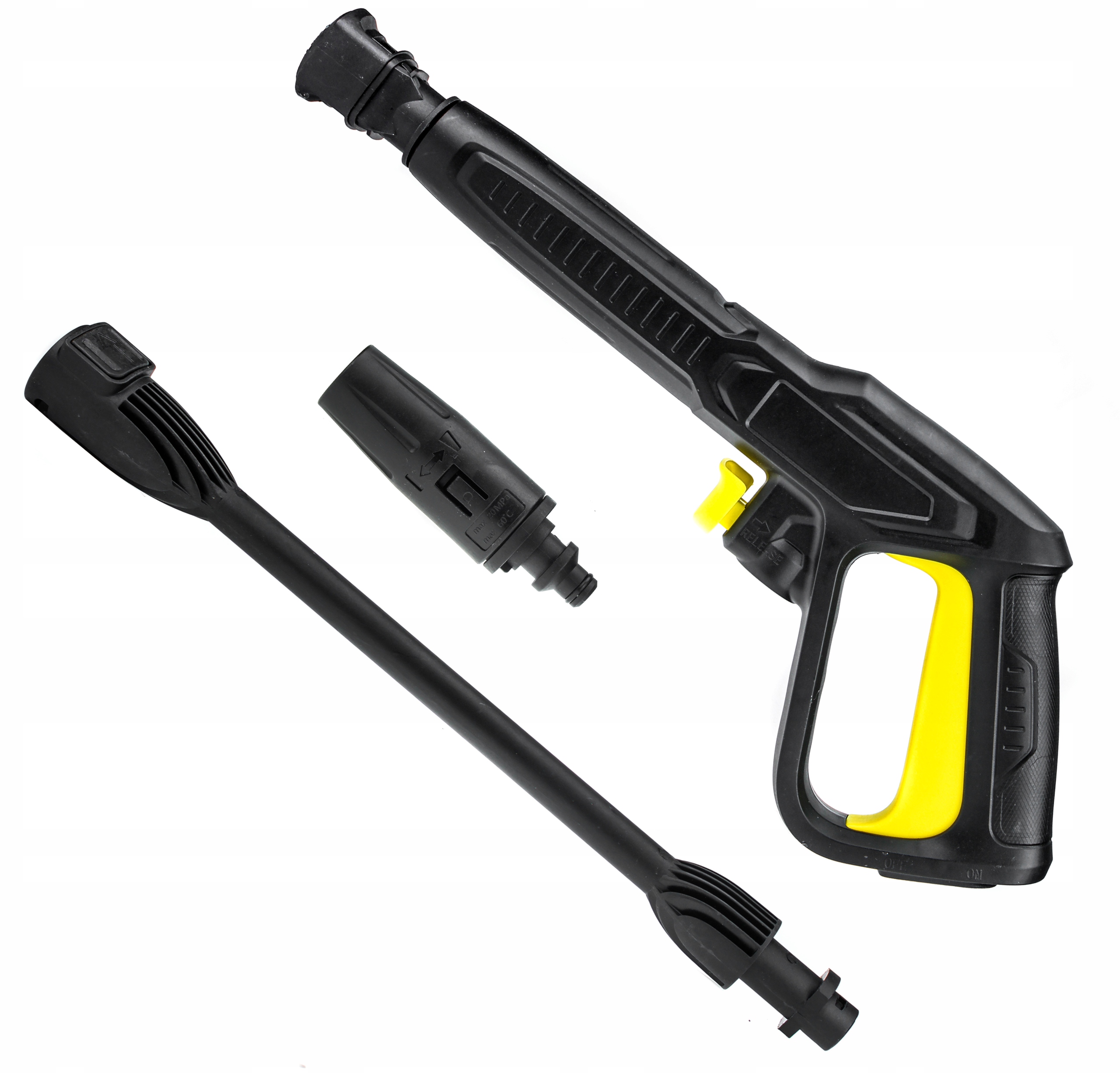 Пистолет совместим со шлангами Karcher Quick Connect (Click). Гнездо для крепления аксессуаров позволяет подключать различные типы оригинальных аксессуаров серии K, например, турбонасадку, пенную насадку, щетку.