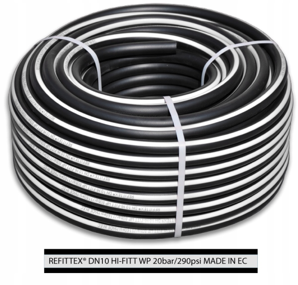 REFITTEX 20BAR - 3-х слойный, армированный технический шланг. Изготовлен из гибкого ПВХ и армирован полиэфирной сеткой. Это гарантирует высочайшую долговечность при прохождении жидкостей под высоким давлением. Шланг предназначен для применений, требующих устойчивости к высокому давлению. Используется для транспортировки средств защиты растений, в качестве комплектующих к компрессорам, мойкам под давлением и пневматическим инструментам. Сохраняет хорошую эластичность даже при низких температурах.