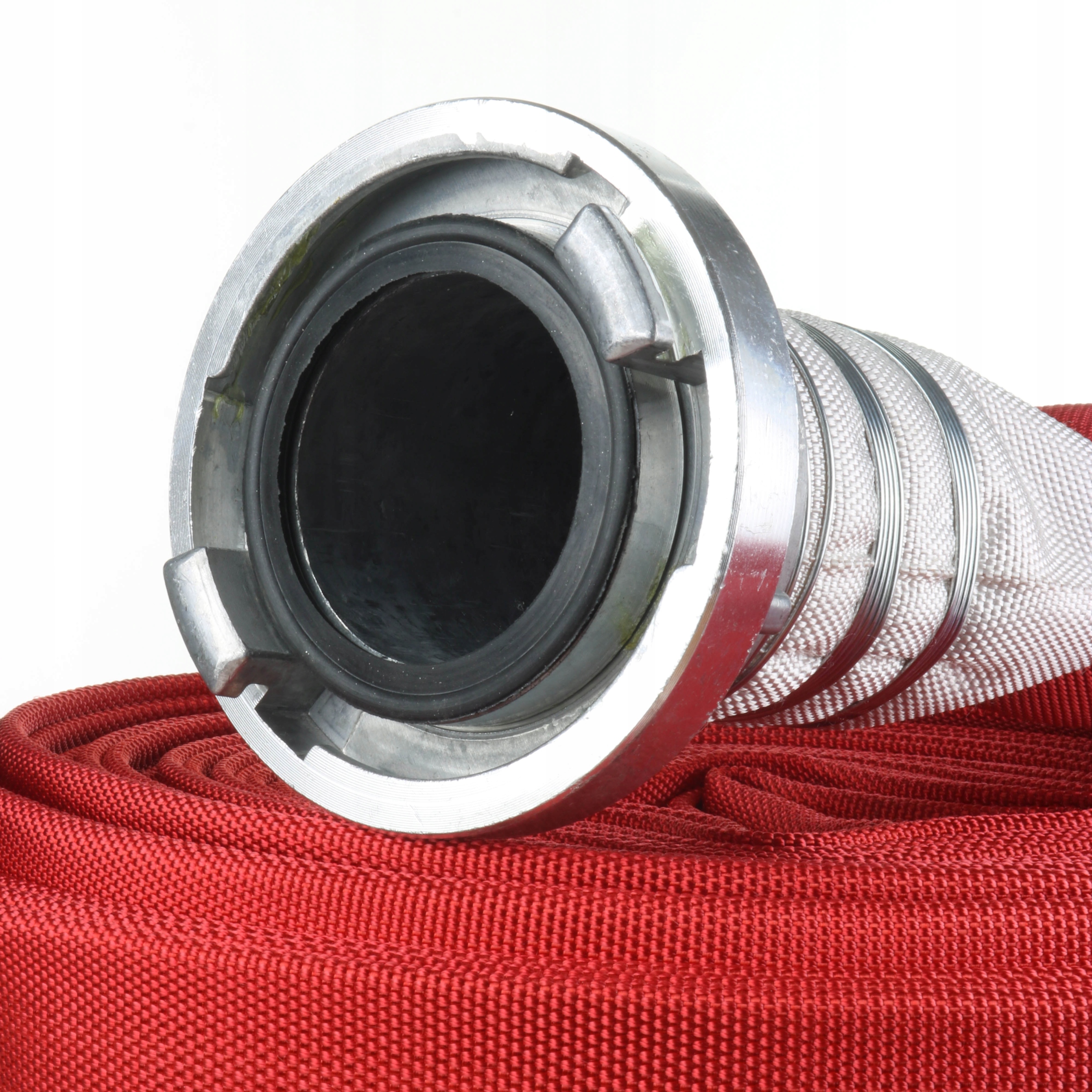 Пожарный рукав оснащен двумя 3-дюймовыми (75 мм) алюминиевыми муфтами STORZ.