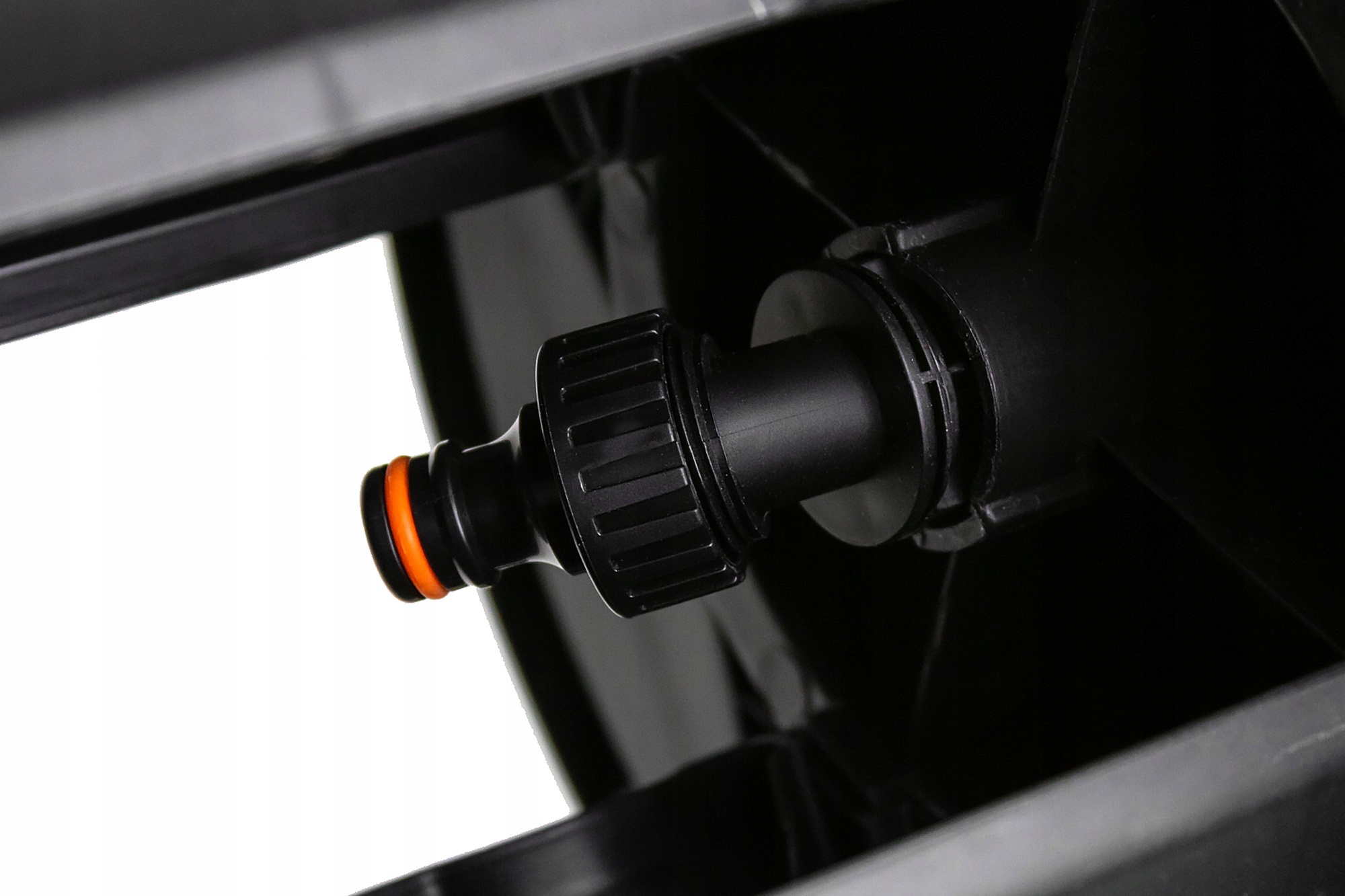 Тележка оснащена универсальным угловым соединителем 5/8 дюйма, позволяющим подсоединить шланг.