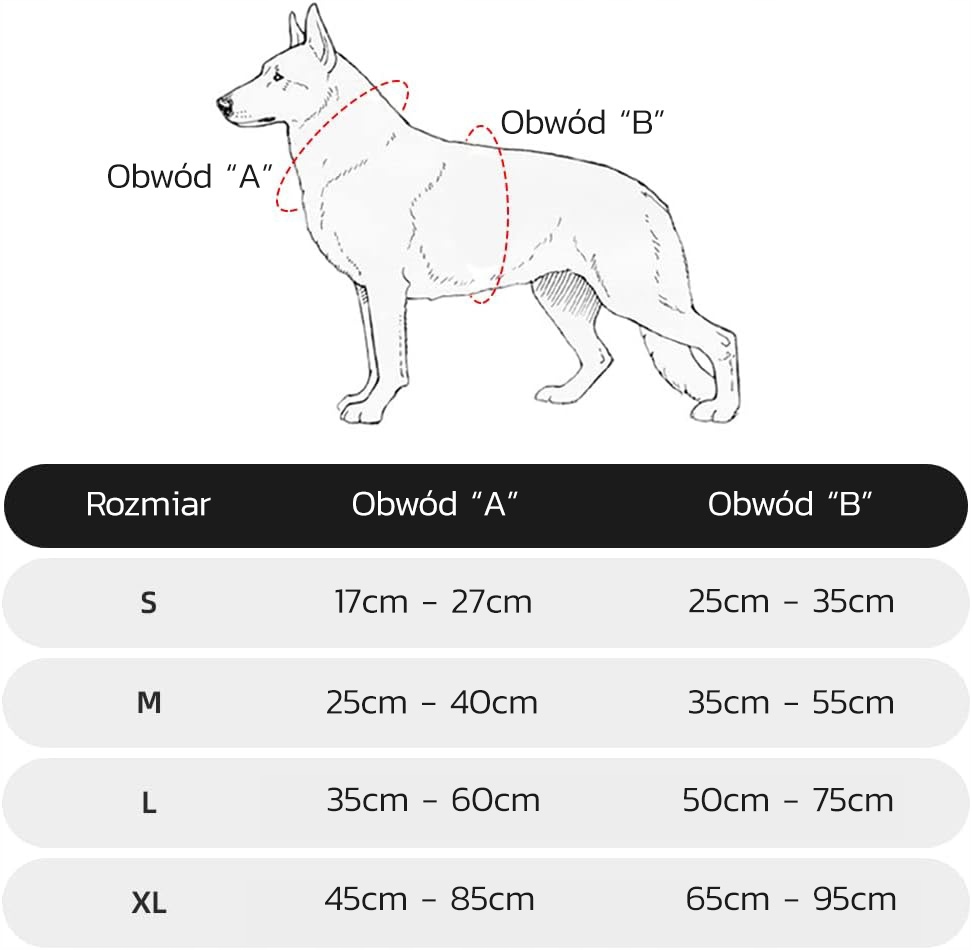 Чтобы правильно подобрать размер, измерьте обхват шеи собаки (низко, над лопатками) – мерка А, и обхват груди в самом широком месте – мерка Б, как на картинке ниже. Затем сравните свои измерения с таблицей размеров. Некоторые размеры совпадают - в этом случае учитывайте, растет ли собака и ее темперамент - чем крупнее и энергичнее собака, тем больший размер следует выбирать.