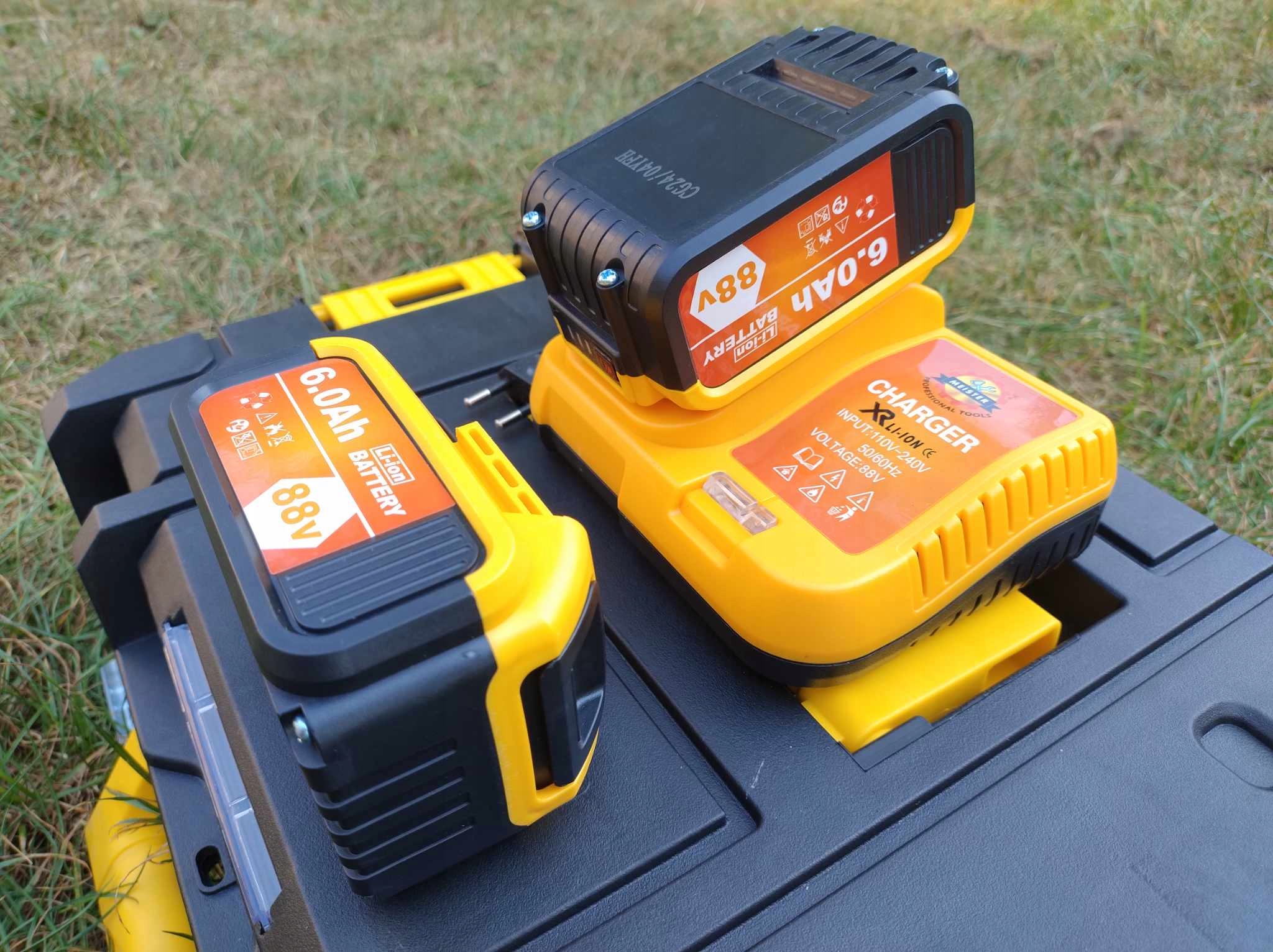 Набор аккумуляторных инструментов шлифовальная машина + ударный гайковерт, аккумулятор 6 Ач