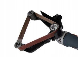 Шлифовальная насадка позволяет быстро заменить угловую шлифовальную машину на ленточную.