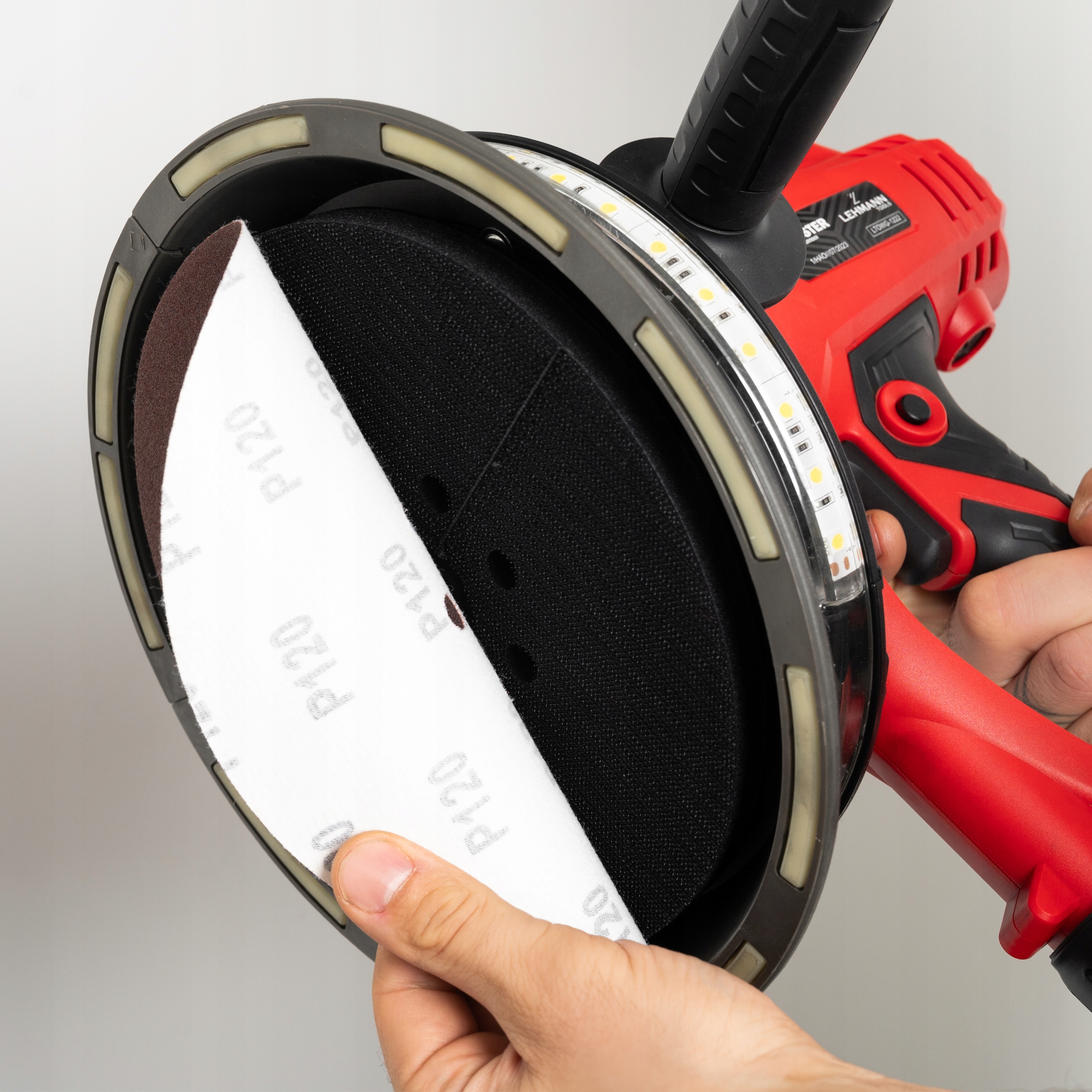 Новейшая шлифовальная машина для штукатурки Lehmann Foster заменит в вашей работе целых три устройства. Шлифует, освещает и поглощает пыль, гарантируя потрясающие результаты и комфортную работу. Первая подобная шлифовальная машина, оснащенная новейшими технологиями, благодаря которым вы сможете выравнивать стены быстрее, но и уже сейчас увидеть их в специальном светодиодном рабочем освещении на 360 градусов. Кроме того, встроенная вытяжка позволит вам дышать чистым воздухом, утилизировав помол в специальный мешок.