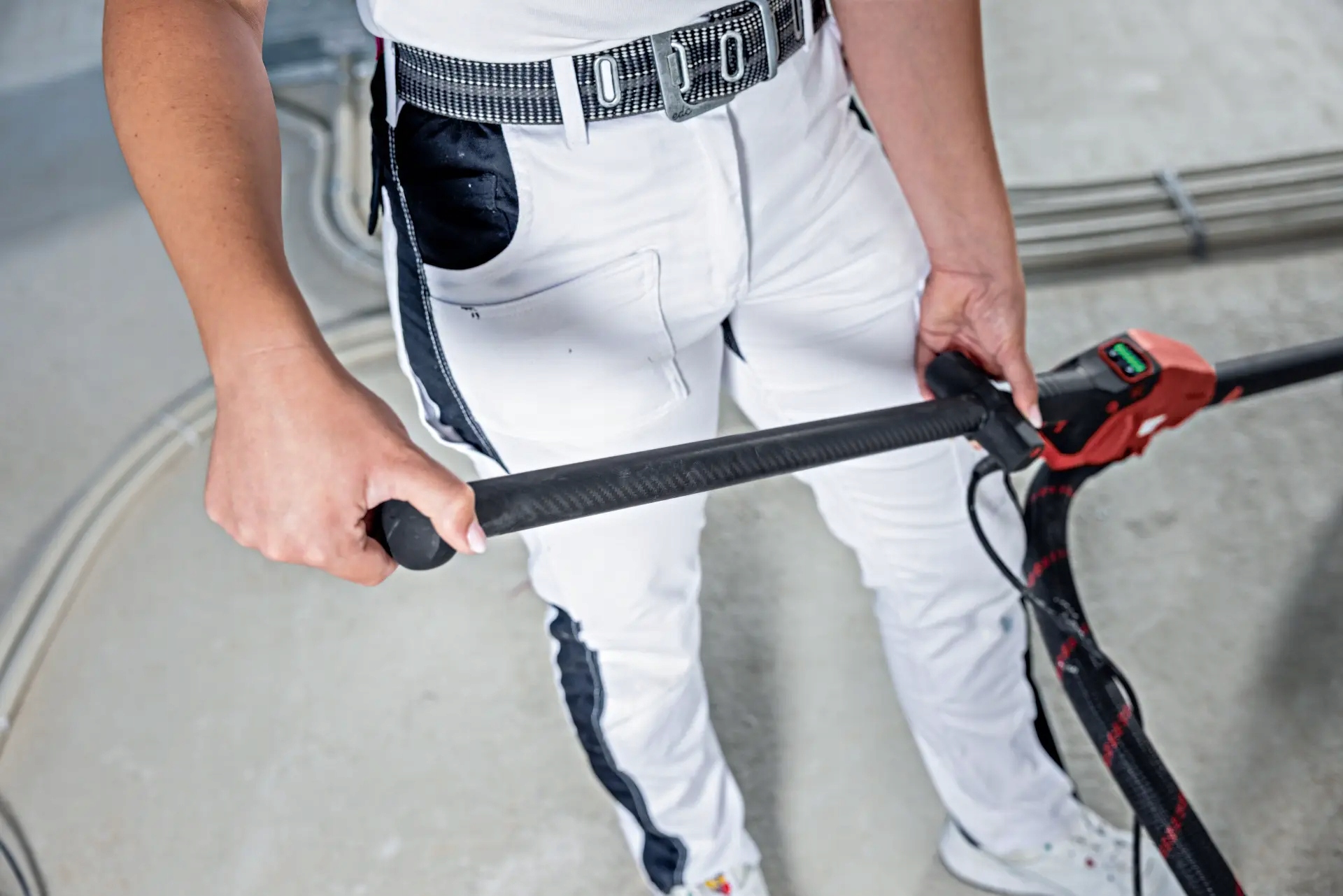 ✅ Эта чрезвычайно легкая машина обеспечивает исключительный комфорт в работе. Шлифовальная машина для стен и потолков оптимально сбалансирована, что обеспечивает превосходное управление, поскольку вес равномерно распределяется по шлифовальной машине. Карбоновая направляющая трубка эргономичной формы и мягкие накладки на основной рукоятке и лопатке делают работу чрезвычайно комфортной.
