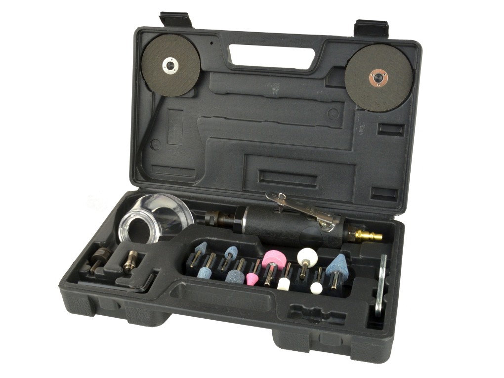 Пневматическая шлифовальная мельница с набором аксессуаров.