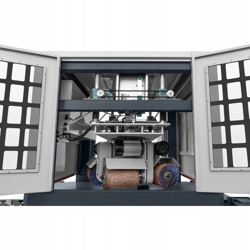 Станок с рабочей шириной 1000 мм сочетает в себе передовые технологии промышленных шлифовальных машин с агрегатами, предназначенными для снятия заусенцев. Оснащенный четырьмя лепестковыми дисками, каждый со своим приводом, он позволяет достигать разной степени шероховатости поверхности за один или несколько проходов.