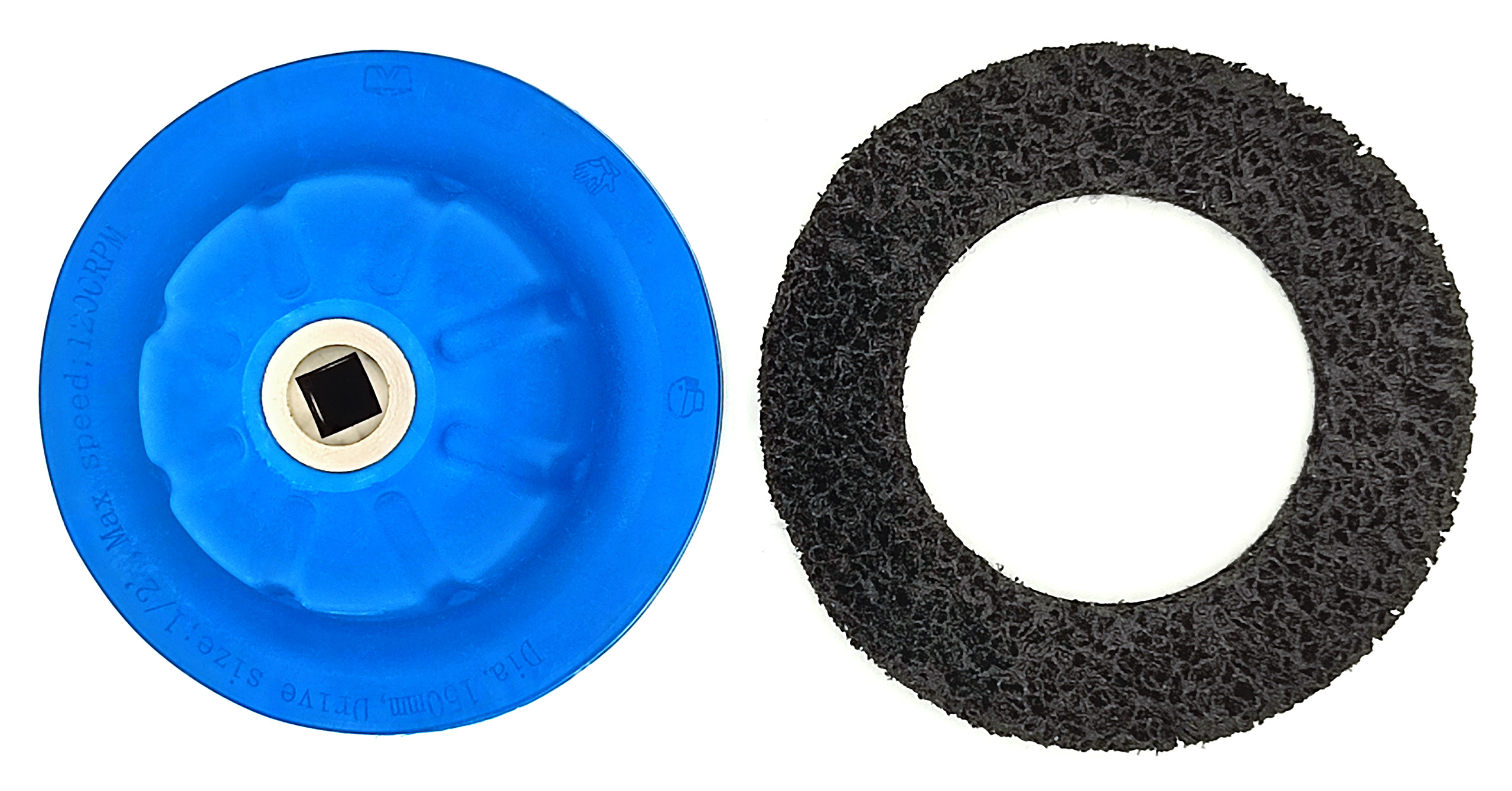 Шлифовальный круг для быстрой очистки и удаления грязи и ржавчины со ступиц, колес и тормозных дисков с креплением колесных болтов. Корпус шлифовального круга изготовлен из ударопрочного и прочного пластика.