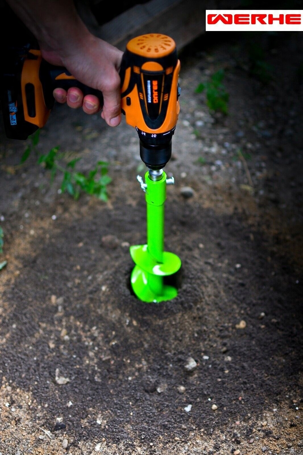 Купив почвенный бур и шестигранный переходник для дрели или шуруповерта, вы сможете использовать свое оборудование для бурения скважин. копать столбы и заборы, деревья. Вы также можете использовать его, чтобы протиснуться под тротуары или дороги и протянуть кабель или трубу.