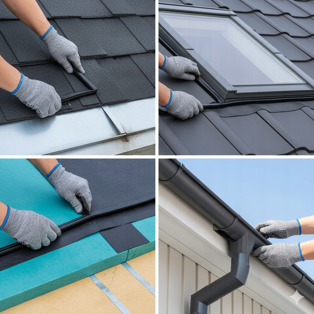 Уплотнение мансардных окон, мансардных окон, желобов.
