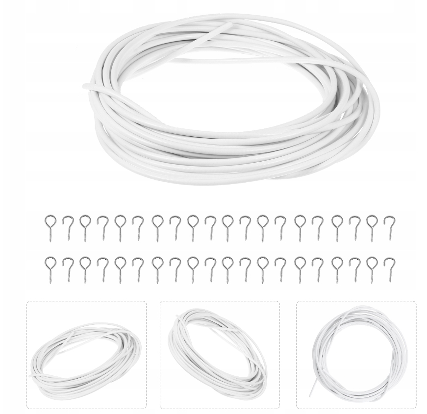 Шнур для штор из проволоки с покрытием Фото 10 метров + крючки 25 шт.
