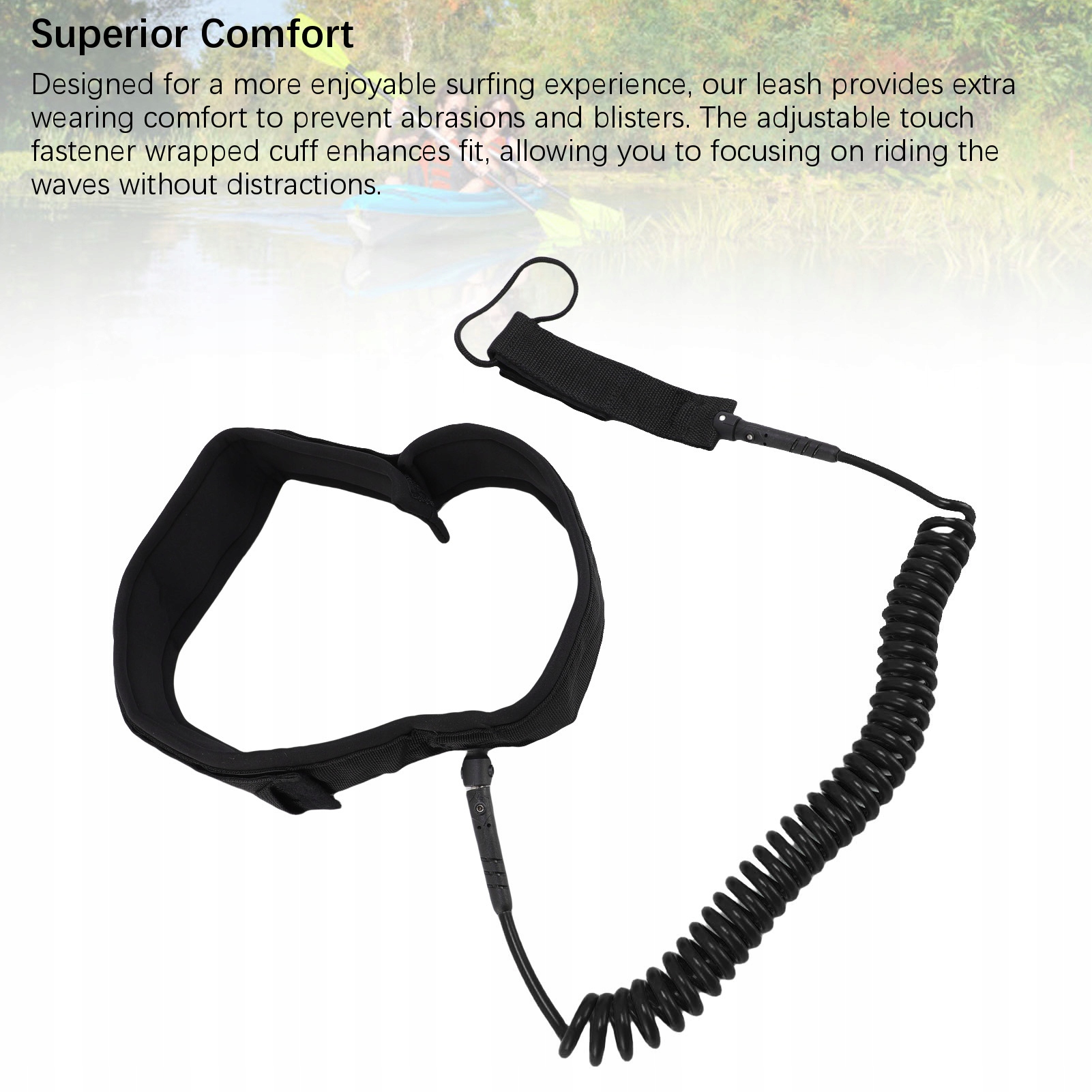 2. Превосходный комфорт: наш поводок, созданный для более приятного серфинга, обеспечивает дополнительный комфорт, предотвращая натирание и образование волдырей. Регулируемая манжета, обернутая сенсорным пакетом, улучшает посадку, позволяя вам сосредоточиться на катании по волнам, не отвлекаясь.