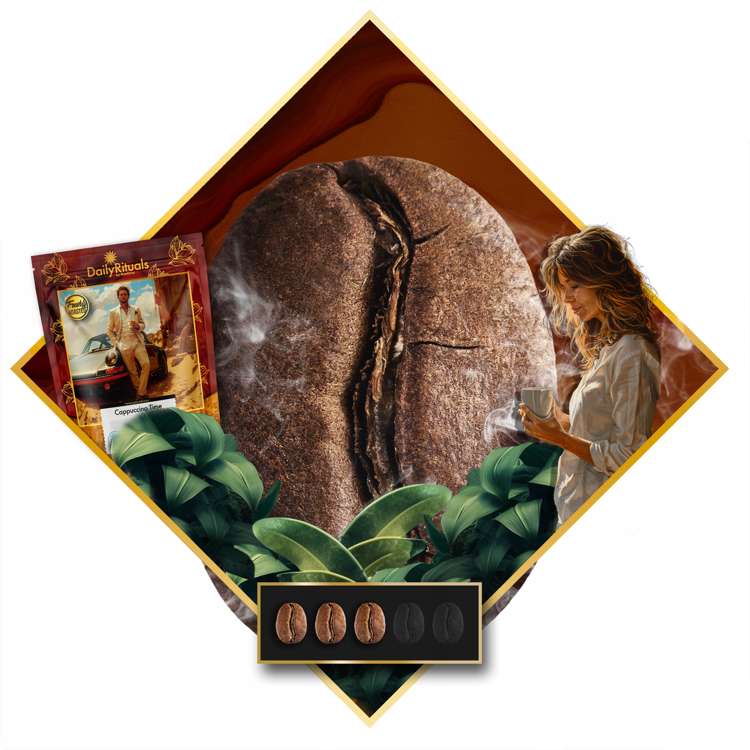 caturra привносит свежесть и ясность в эту смесь, добавляя фруктовые ноты и тонкую кислотность, которая идеально сбалансирует сливочный капучино. Его концентрированный вкус идеально контрастирует с мягкостью молока, создавая сбалансированный аромат, который добавляет энергию и легкость в напиток