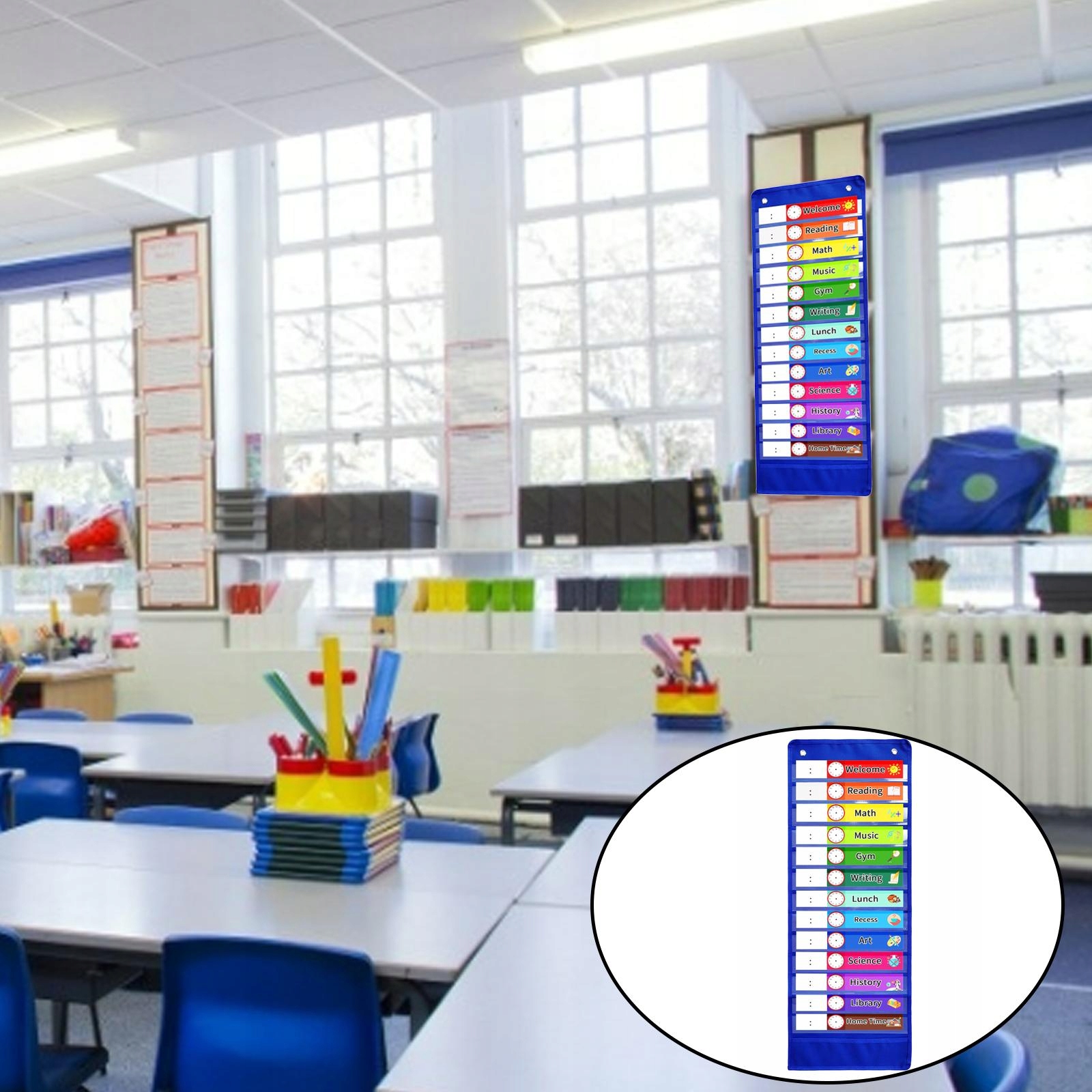 Широко используется: карманные диаграммы с ежедневным расписанием - отличная идея для офиса, школы и домашнего использования. Организуйте свой дневной план, храните свои файлы, пишите слова и выполните вычисления, покажите уроки, напишите.