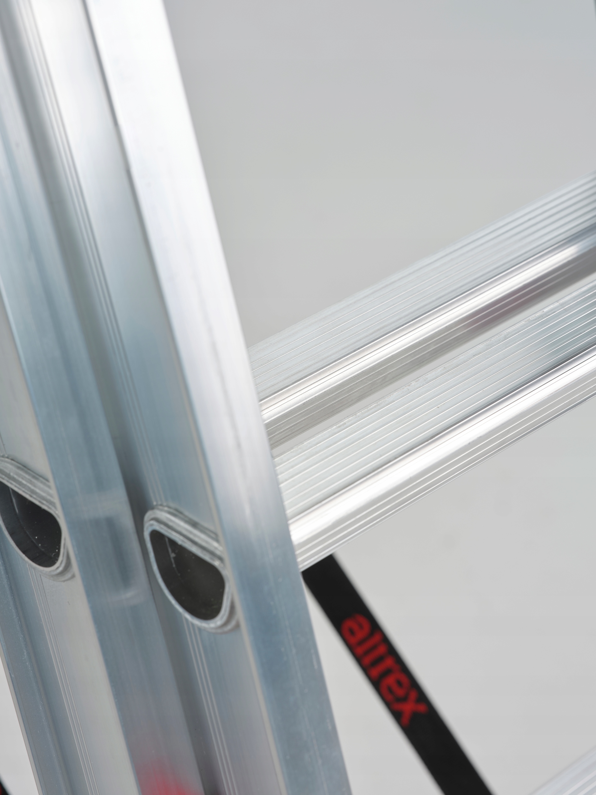 Лестница имеет глубокую ступеньку D-образной формы, встречающуюся только в Altrex. Большая нескользящая поверхность обеспечивает больше места и, следовательно, больший комфорт при стоянии.