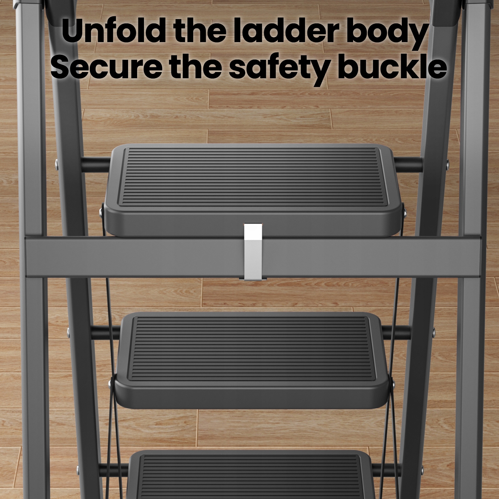 Эта складная лестница подходит для повседневных домашних задач, таких как организация высоких полок и замена лампочек, сочетая в себе практичность и удобство. Верхняя платформа может использоваться для размещения инструментов или в качестве полки для хранения, что делает ее идеальной для повседневного домашнего использования в качестве подарка на новоселье или вспомогательного инструмента для украшения рождественской елки.
