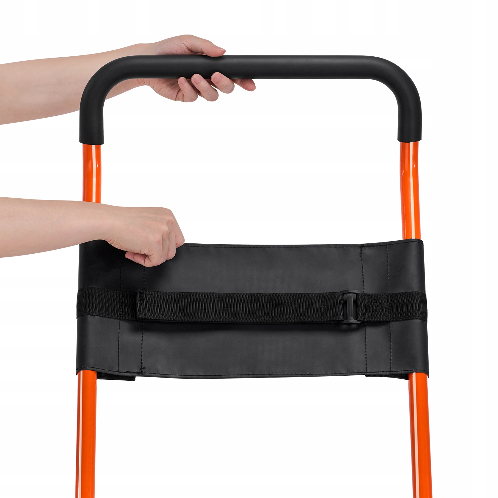 Задняя ручка для нажатия нашей лестничной коляски оснащена механизмом блокировки, который позволяет вам безопасно исправлять в разбросе или сложных положениях, что обеспечивает дополнительный комфорт и безопасность