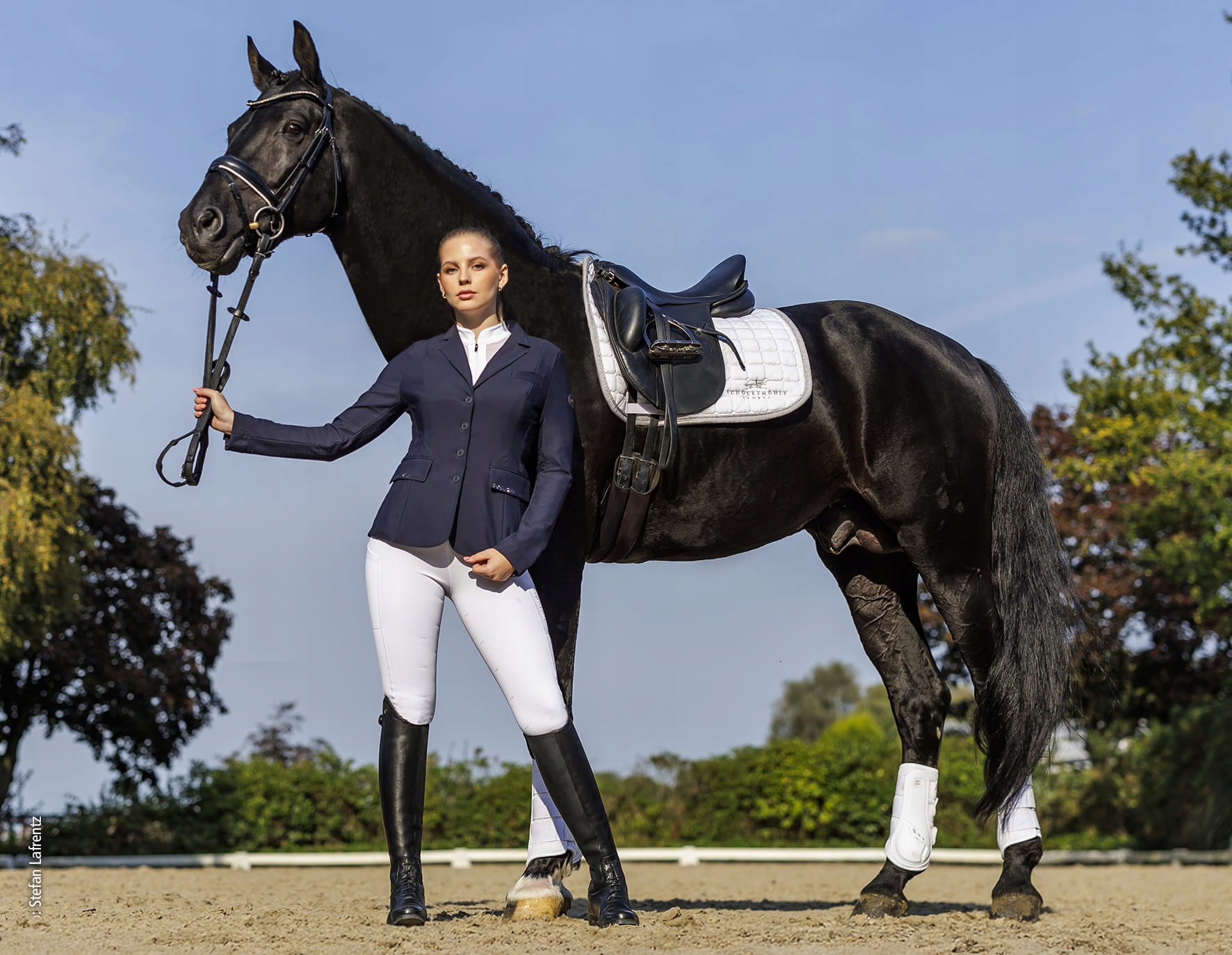 Equestrian Tailcoat Schockkemöhle Alaine - это предложение для Amazon, которое ценит классический внешний вид с современными деталями . Благодаря облегающему и декоративному акцентам, хвостовое покрытие выглядит великолепно как на четырехугольнике, так и во время соревнований.