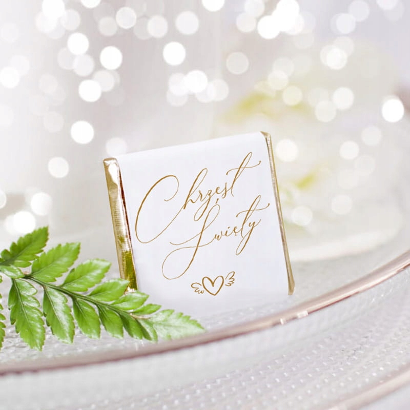 - Этикетка шоколада обогащена с надписью: Святое Крещение.