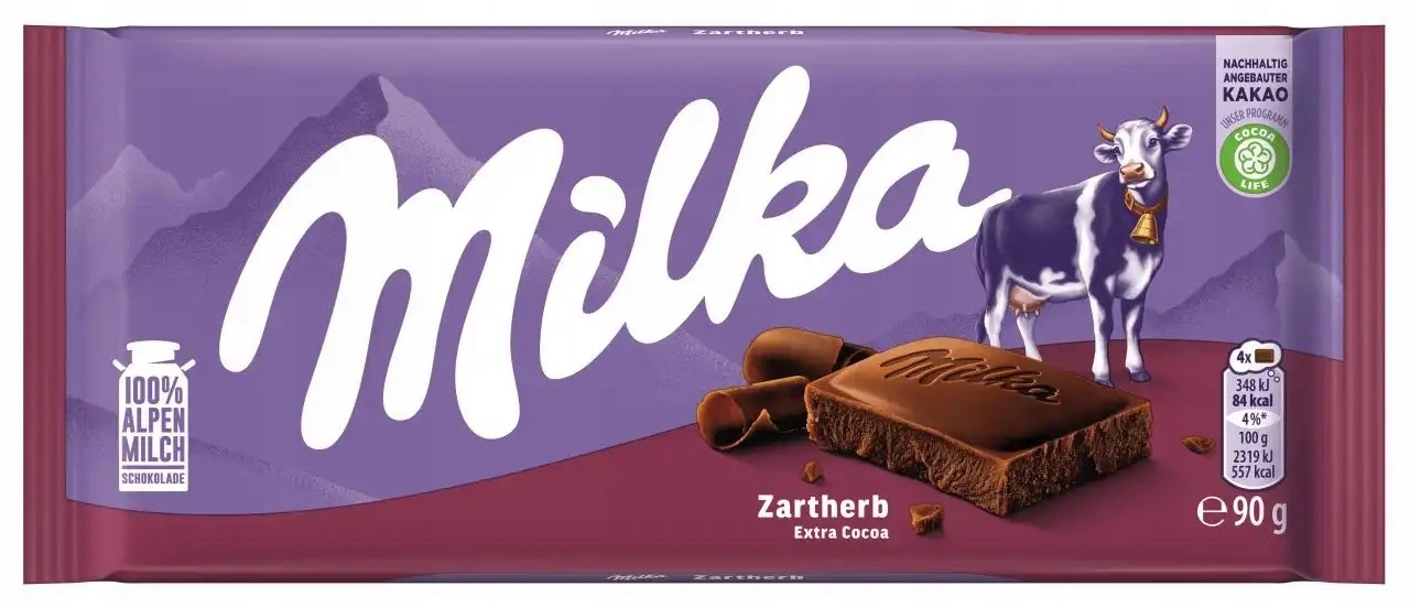 Milka Zartherb - это тарелка темного шоколада из альпийского молока. Эта таблетка предлагает слегка плавильную консистенцию и богатый вкус с горьким с горьким биттер, который идеально подходит для тех, кто любит более интенсивный шоколадный опыт. Milka Zartherb объединяет проверенное качество Milka с глубоким вкусом темного шоколада.