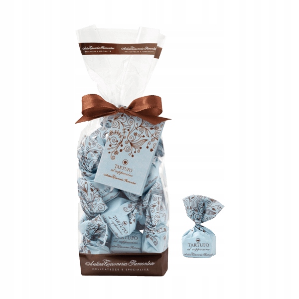 Легкие трюфели с молочно-горьким ароматом капучино. Прекрасный подарок в декоративном полиэтиленовом пакете.