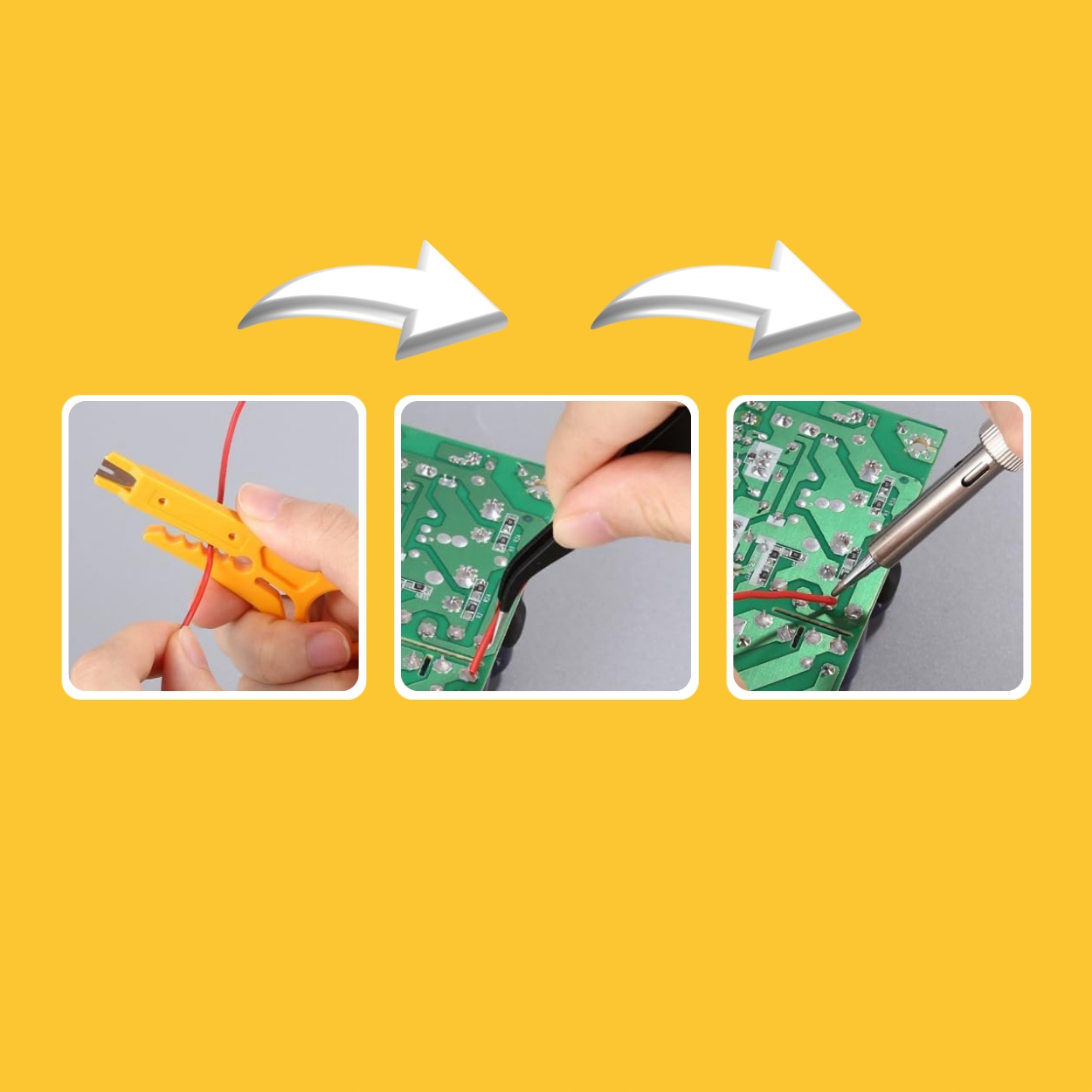 Набор включает в себя все, что вам нужно для точного пайки: колба с регулировкой температуры, сплошная подставка, 6 сменных пещер, суеверия, олово, съемник изоляции, запасные кабели, пинцеры и карандаш Организатор. Идеально подходит для пайки электронных компонентов среднего размера, соединительных проводов или ремонта небольших электрических устройств. Железо характеризуется сплошной производительностью, скважины конструкции и контроль температуры, что обеспечивает точную и удобную работу