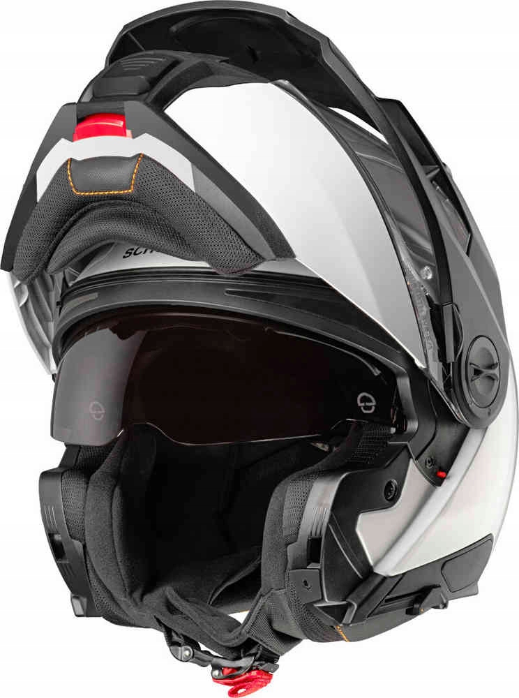 - Вентиляция в модели E2 выведена на новый уровень. Мотоциклетный шлем Schuberth E2 оснащен двухступенчатым регулируемым вентиляционным отверстием головы и увеличенным спойлером, интегрированным с вентиляционными отверстиями. Все это для обеспечения превосходного воздушного потока во время путешествий в самых сложных условиях.