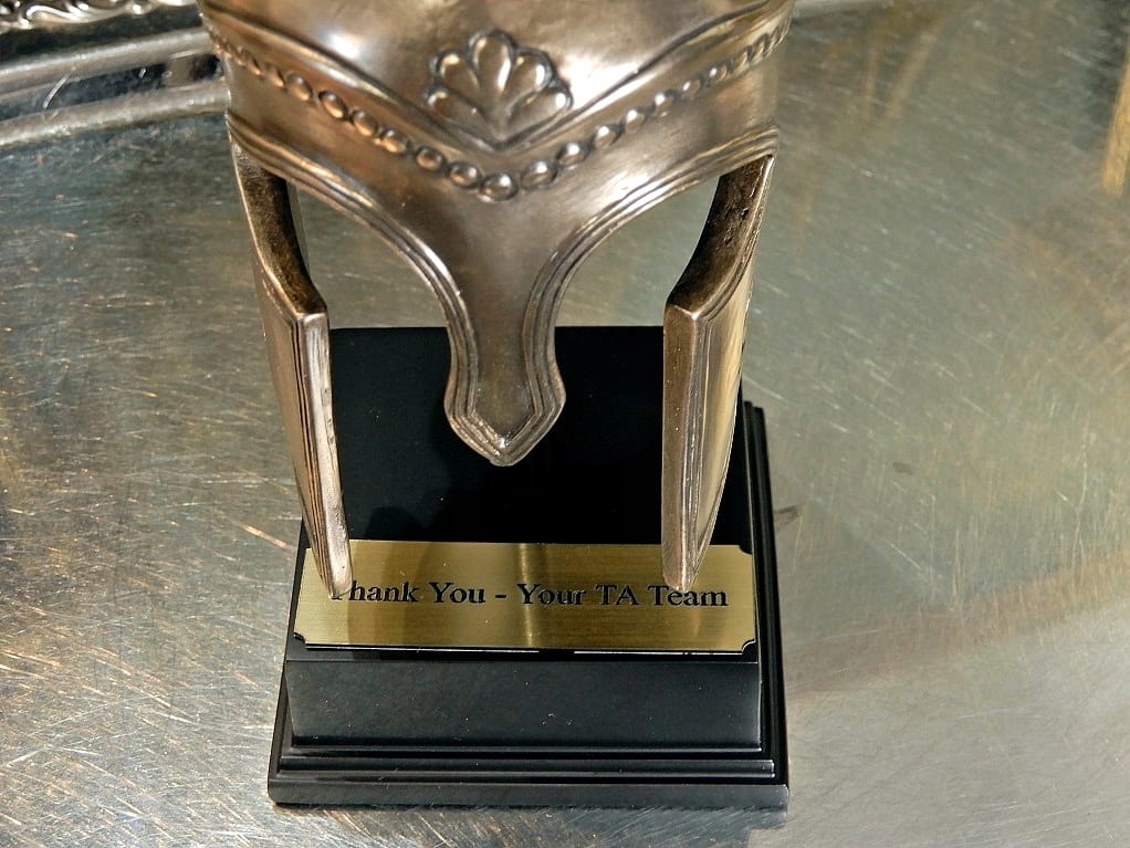 Можем изготовить посвящения с гравировкой на золотой пластине из гравировального ламината. Прикрепим его к нижней части фигурки, предварительно прикрепив к постаменту 4 шайбы или меньшего размера. Выберите шрифт, введите текст, заплатите, а мы сделаем все остальное. Вы можете запросить визуализацию.