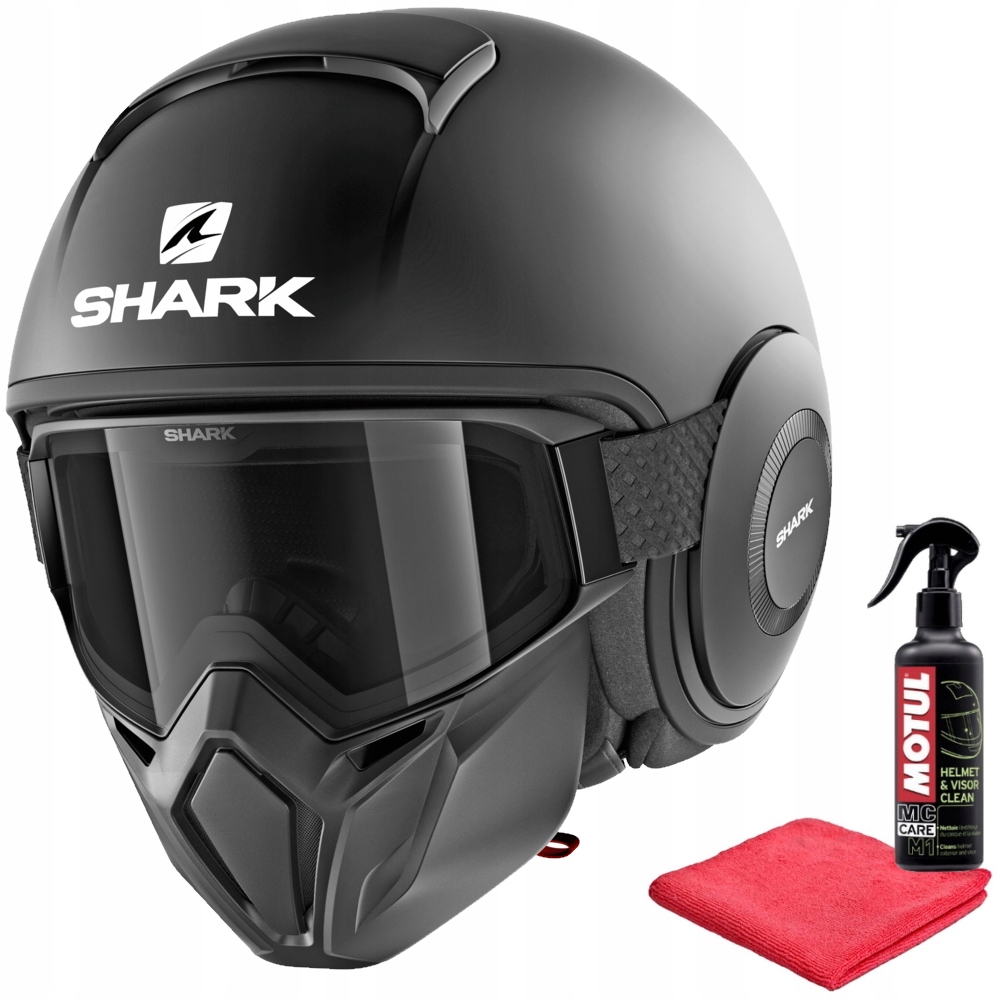 SHARK STREET-DRAK — городской, привлекательный шлем с открытым лицом. Очки шлема имеют ультратонкую оправу, обеспечивающую широкое поле зрения. Кроме того, они оснащены покрытием против царапин и двойным покрытием, предотвращающим оседание пара. Очки также легко снимаются и имеют специальную застежку «easy clip». Вентиляция шлема хорошо оптимизирована благодаря маске. Он, в свою очередь, имеет два размера для идеального прилегания к голове мотоциклиста. Он изготовлен из термопластической смолы, а его структура адаптирована для вождения в очках. Подкладка с надписью AEGIS является антибактериальной и дышащей, обеспечивая высокий комфорт использования. Его можно легко снять и постирать. Шлем крепится микрорегулируемым ремнем и приспособлен для установки специального переговорного устройства SHARKTOOTH®.