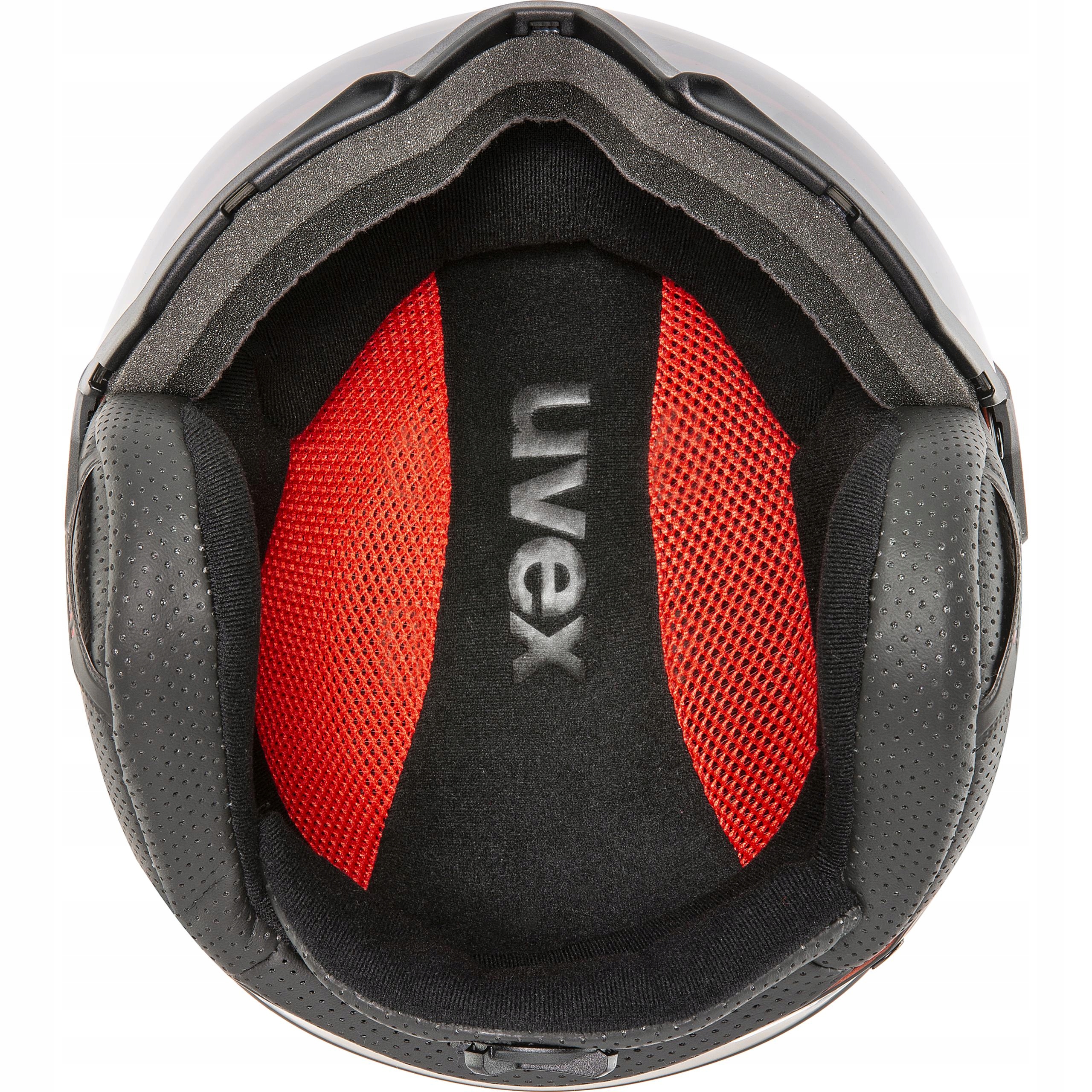 Привлекательный серебристый зеркальный козырек с противозапотевающим покрытием Uvex Supravision анатомически оптимизирован. Он идеально прилегает к лицу, легко регулируется тремя щелчками мыши и обеспечивает обзор без сквозняков на любой скорости.