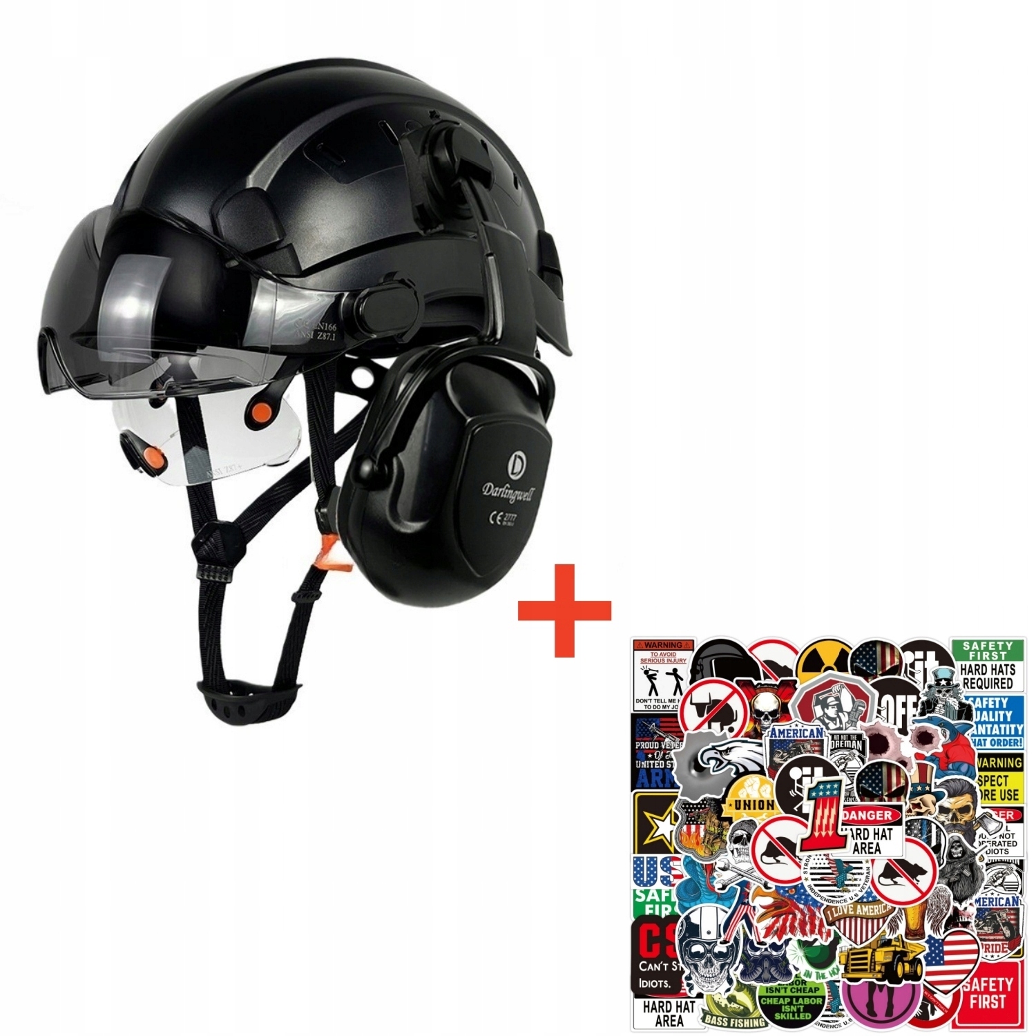 ⭐ ЗАЩИТНЫЙ ШЛЕМ CE С КОЗЫРЬКОМ, ЗАЩИТНЫЕ ОЧКИ, НАУШНИКИ ДЛЯ ANSI ENGINEERING ЗАЩИТНЫЙ ШЛЕМ С 50 ВОДОНЕПРОНИЦАЕМЫМИ НАКЛЕЙКАМИ ДЛЯ САМОДЕЛЬНЫХ ИЗДЕЛИЙ ⭐ РЕГУЛИРУЕМЫЙ 52-64 см ⭐ ЧЕРНЫЙ ⭐