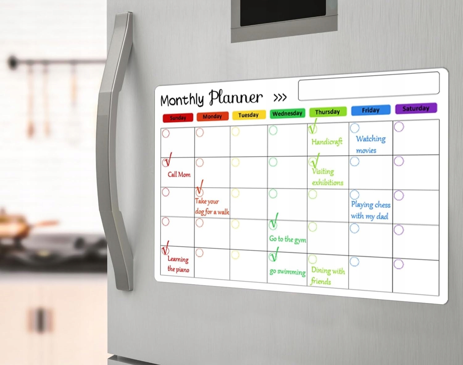 Ежемесячное график, измерение 40x30 см -это практическое время организатора, идеально подходящее для управления повседневными обязанностями, мероприятиями, встречами или задачами как дома, так и в офисе. Оснащенная сухой поверхностью, позволяет сохранять и редактировать планы на целый месяц. Набор также включает в себя маркеры, которые позволяют вам создавать заметки и легко смущать их.