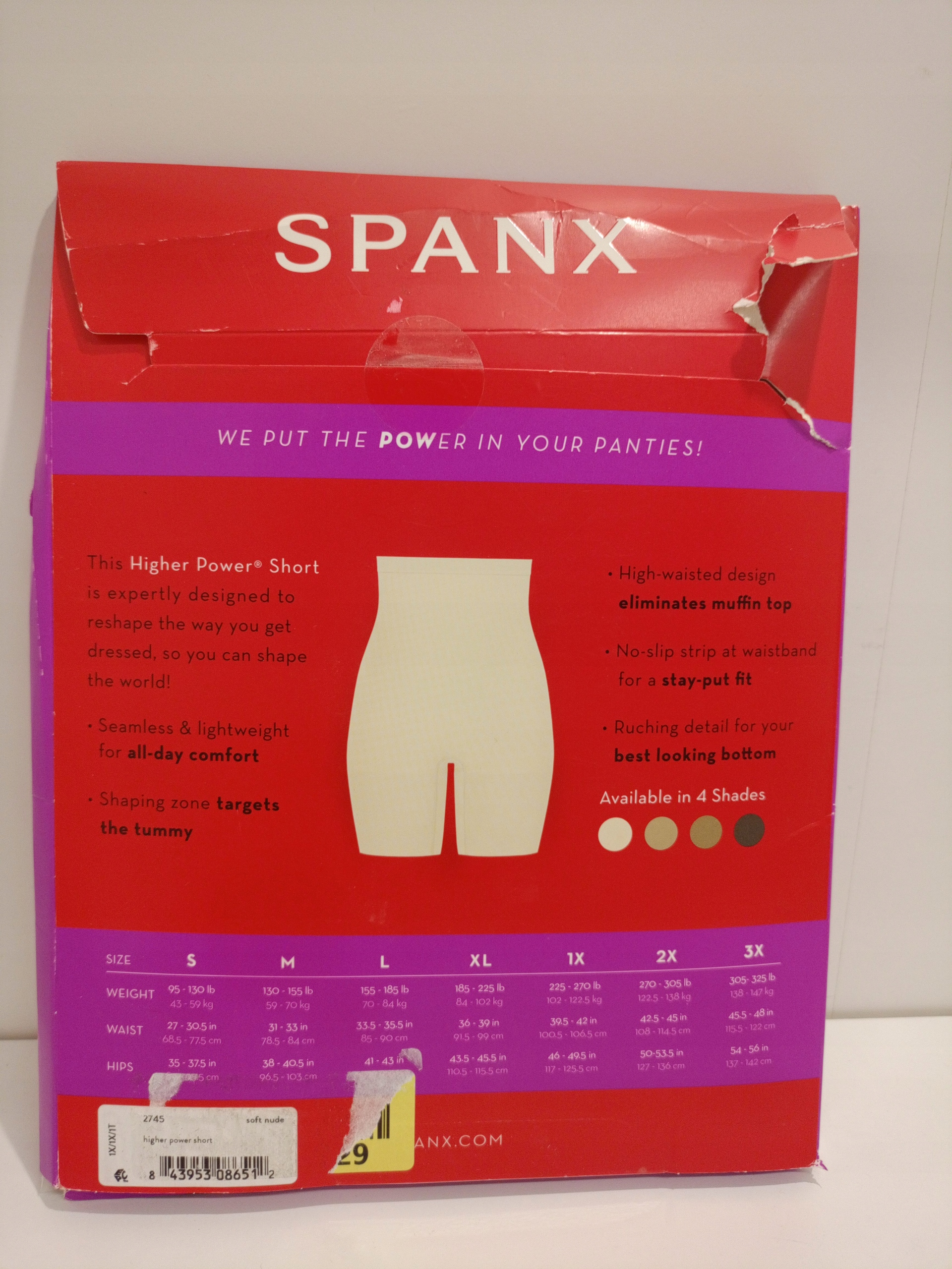 название товара: корректирующее белье Spanx для женщин, шорты Power с высокой талией (обычные размеры и размеры больших размеров), мягкий телесный цвет, XXL.