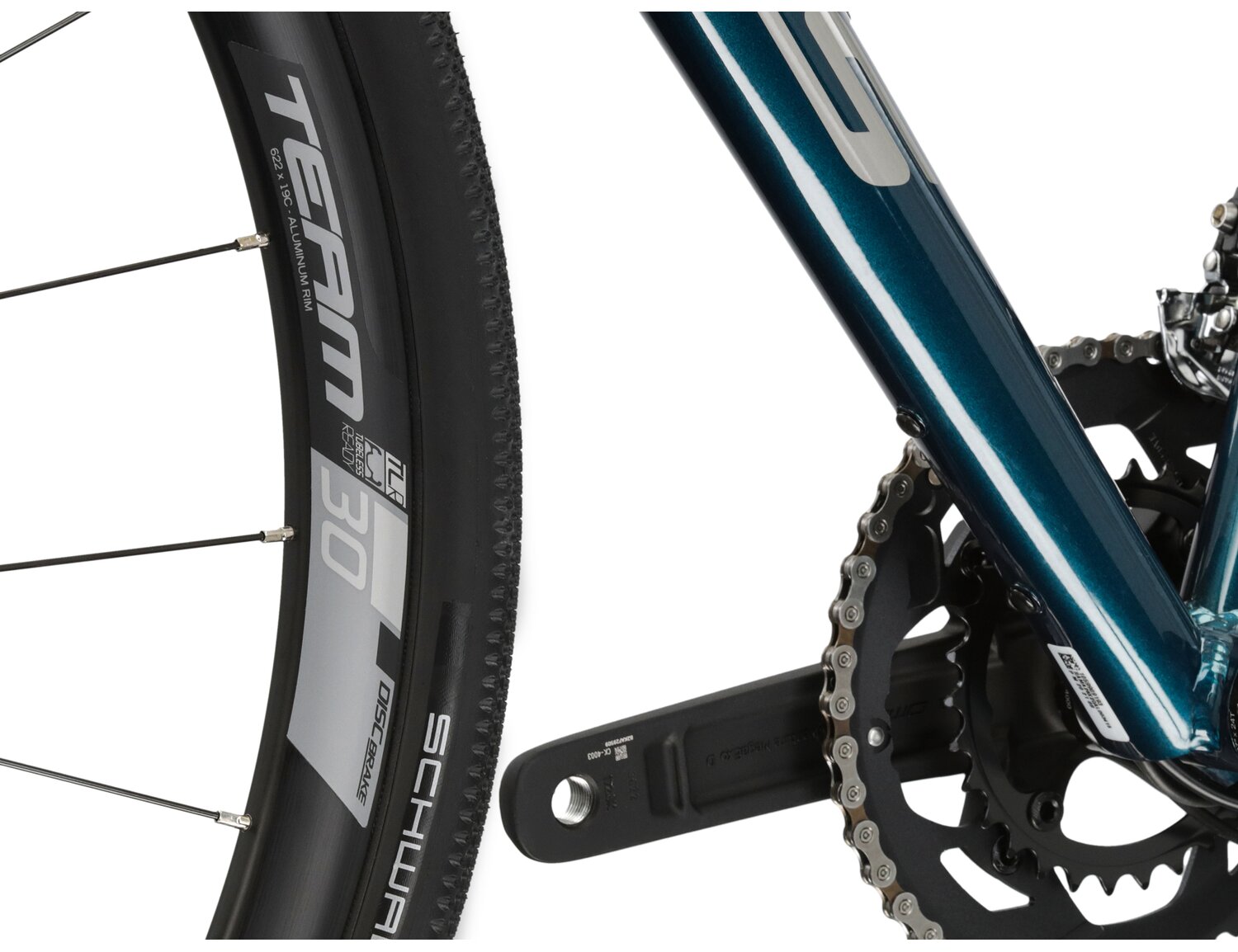 Колеса — наши проверенные диски Kross, оснащенные покрышками WTB Riddler, проверенными и полюбившимися многим велосипедистам, которые люблю гравий. Ширина 37 миллиметров. Они идеально подходят для быстрых ровных участков дороги и доставят вам массу удовольствия от езды по бездорожью. Мы обернули руль пленкой Fi'zi:k Terra Microtex, чтобы обеспечить комфорт и надежный захват руля даже во время самых сложных маневров на бездорожье.